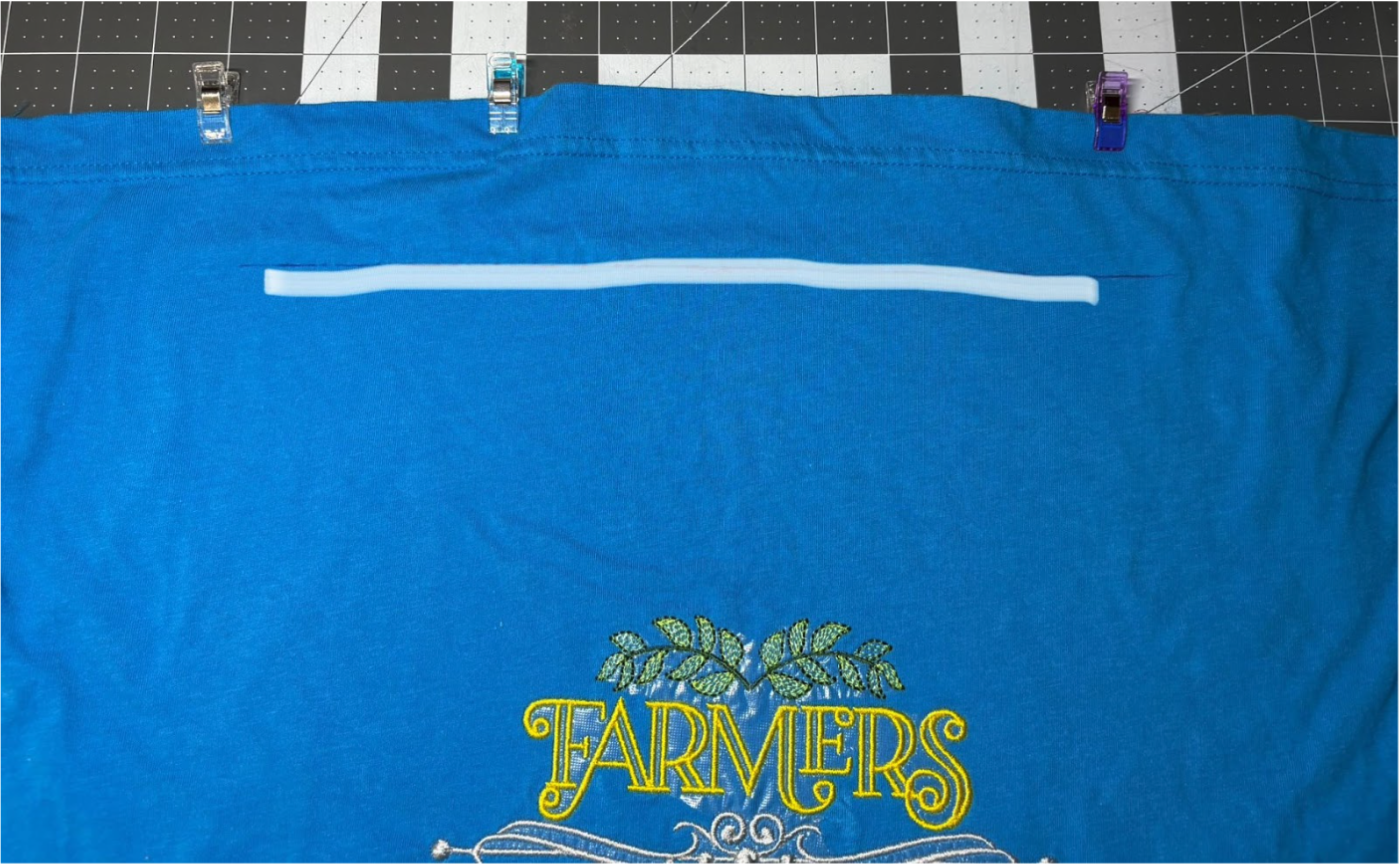 Place the bag flat with the hem at the top. Pin or clip to hold it together.