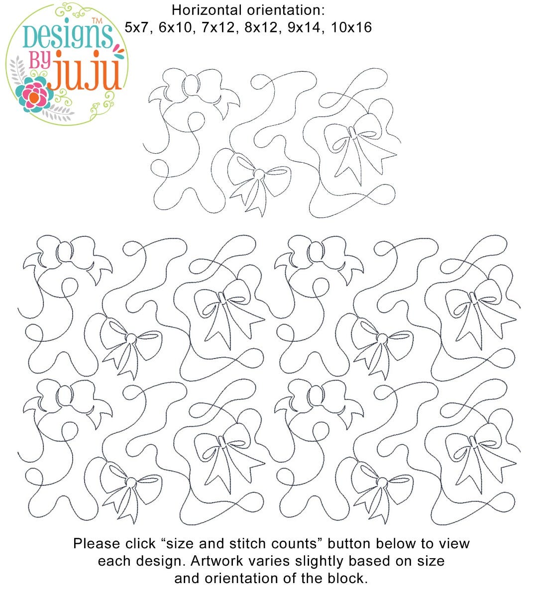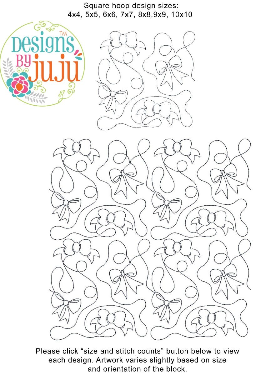 Please note: Both the scale of each pattern and arrangement of the motifs may vary based on the hoop size. Please click the "Size and Stitch Count" button to view the artwork for each size.