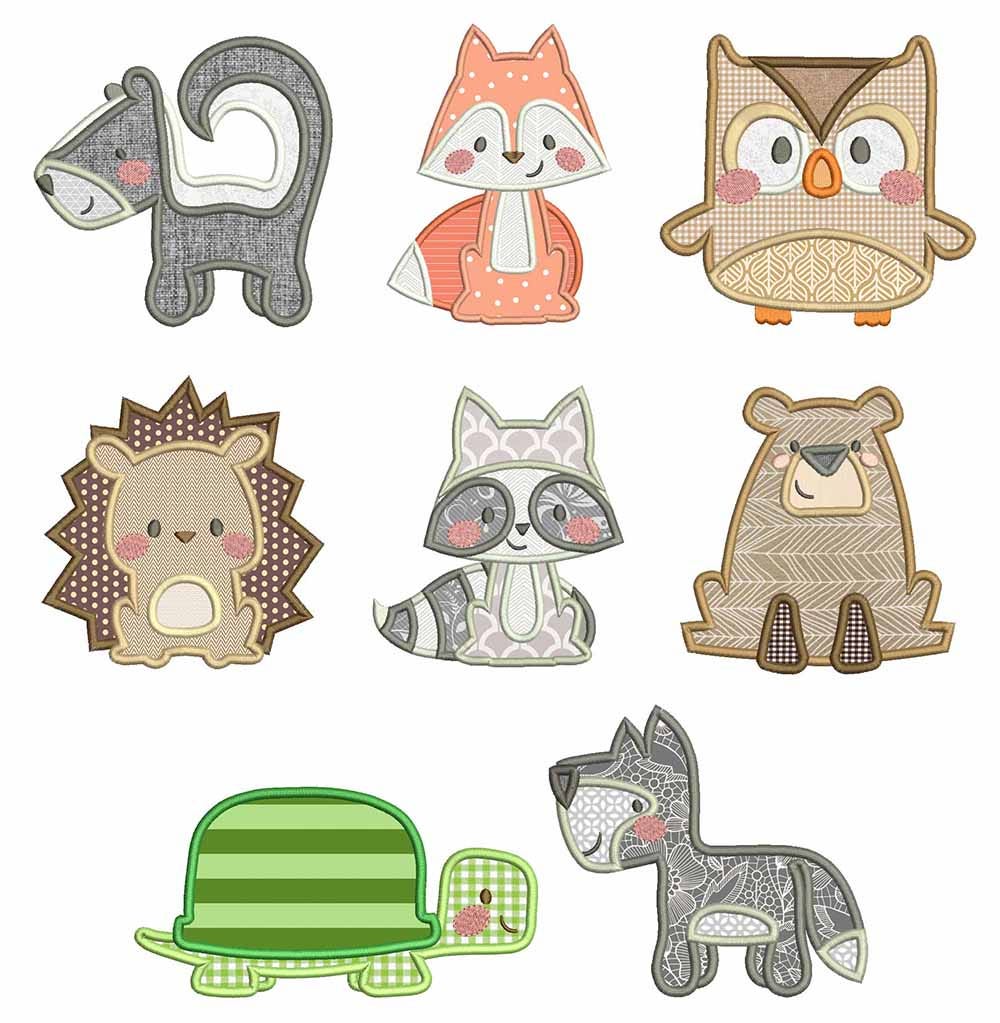 8 simple and sweet "boxy" shaped woodland animals in applique AND stipple quilt blocks!