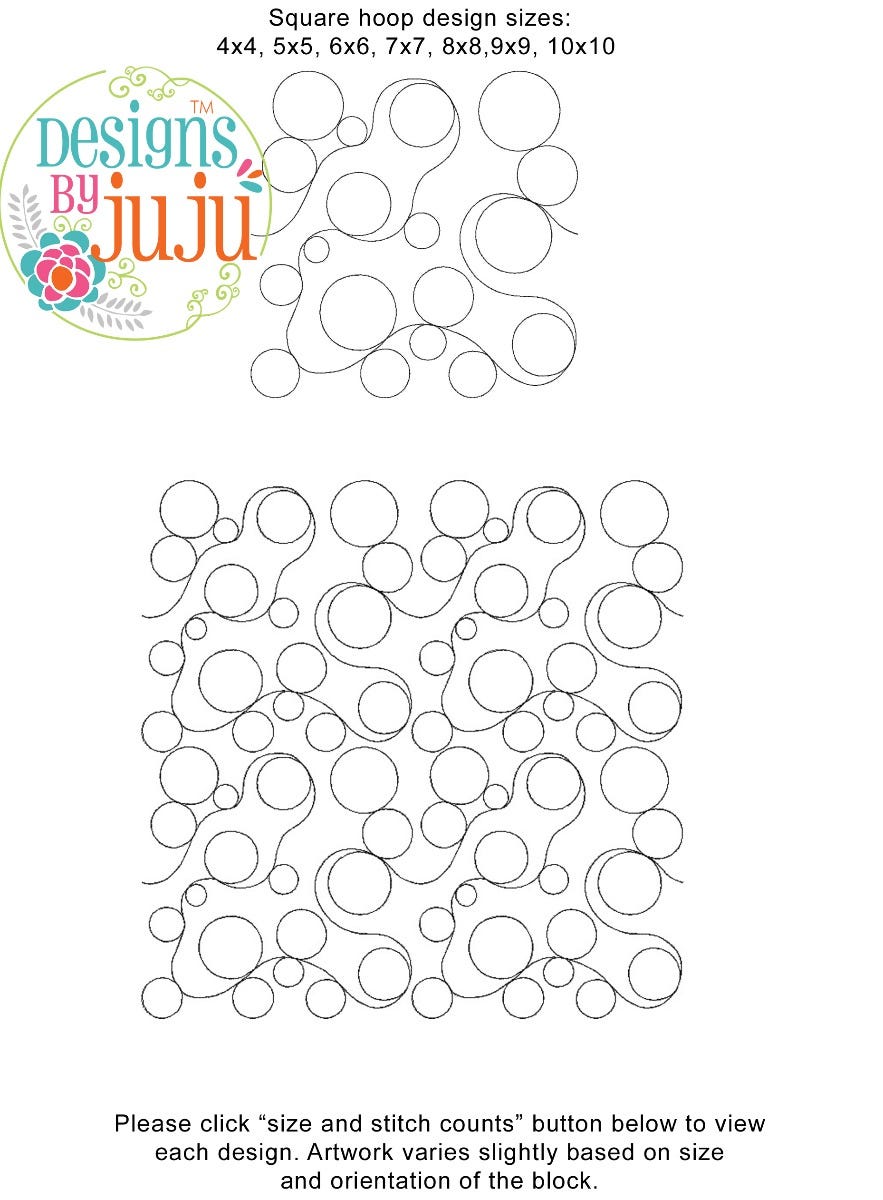 Please note: Both the scale of each pattern and arrangement of the motifs may vary based on the hoop size. Please click the "Size and Stitch Count" button to view the artwork for each size.