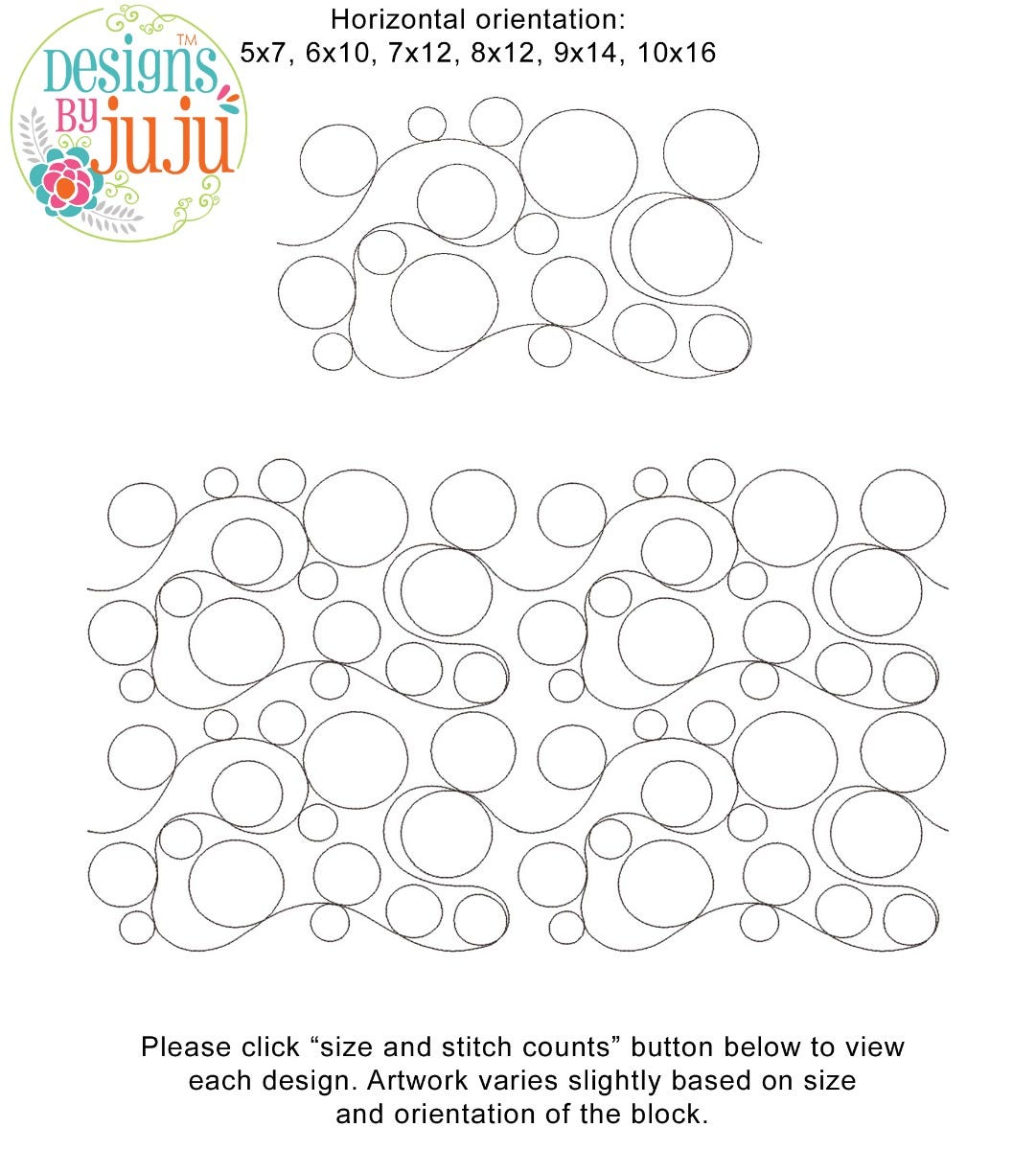 Each one of our End-to-End Quilting™ embroidery designs is an originally created design available in a large variety of block sizes. Every block is one continuous single-run line running edge to edge beginning on the left and exiting on the right. There is NO backtracking or double stitching. Each size block has been engineered and manually digitized by our team for EXACT edge-to-edge quilting precision so that when they are aligned properly in your hoop, you cannot tell where one block ends and the next one begins! ADDITIONALLY, the art has been created for each size so that when the rows are stacked on top of each other, it provides a practically seamless, professional, allover quilting effect that mimics (E2E) pantographs so you can do edge-to-edge quilting on your embroidery machine!