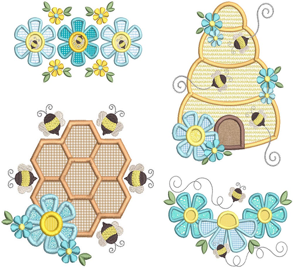 By popular demand: 4 adorable busy bee applique designs (that coordinate with our ITH Busy Bee home decor items) are now available!
