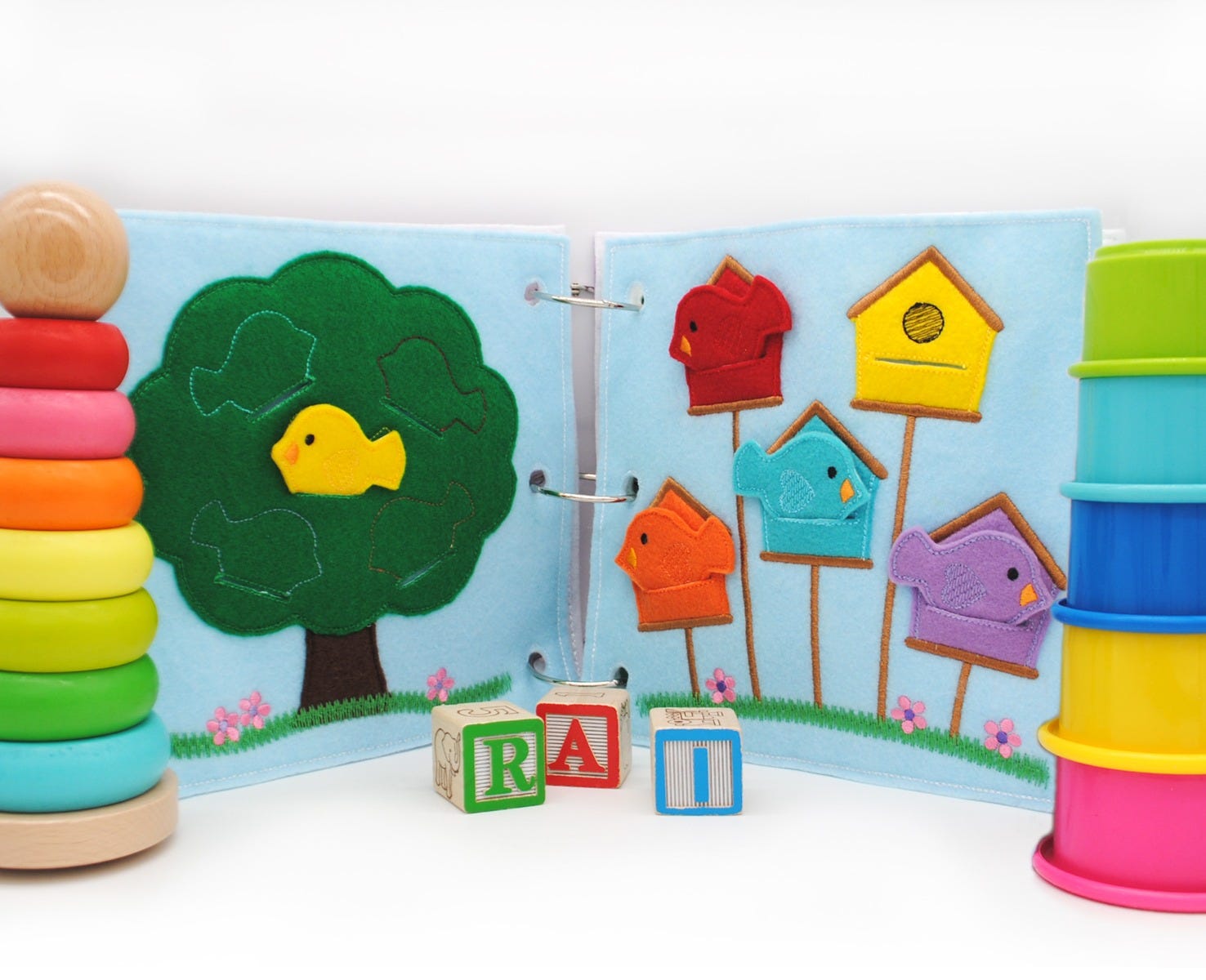 This product is one of our ā2 page deluxe setsā. A 2 Page Deluxe Design is a set of 2 pages that will go side by side in the Busy Book. They come with all the parts to the set that your child will need to use to complete each page. Each set comes with backs (blank pocket page) that are to be used for the Add On Activites. Ā They will be attached on the under side of the hoop after the front of the page is stitched completely out.Ā All steps and instructions will be included.