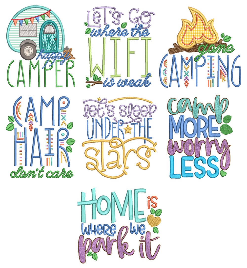 *Please note that the following designs contain applique components:Ā Happy camper / Gone camping /Ā