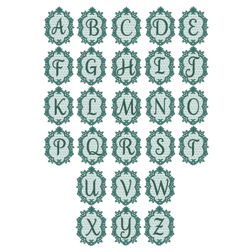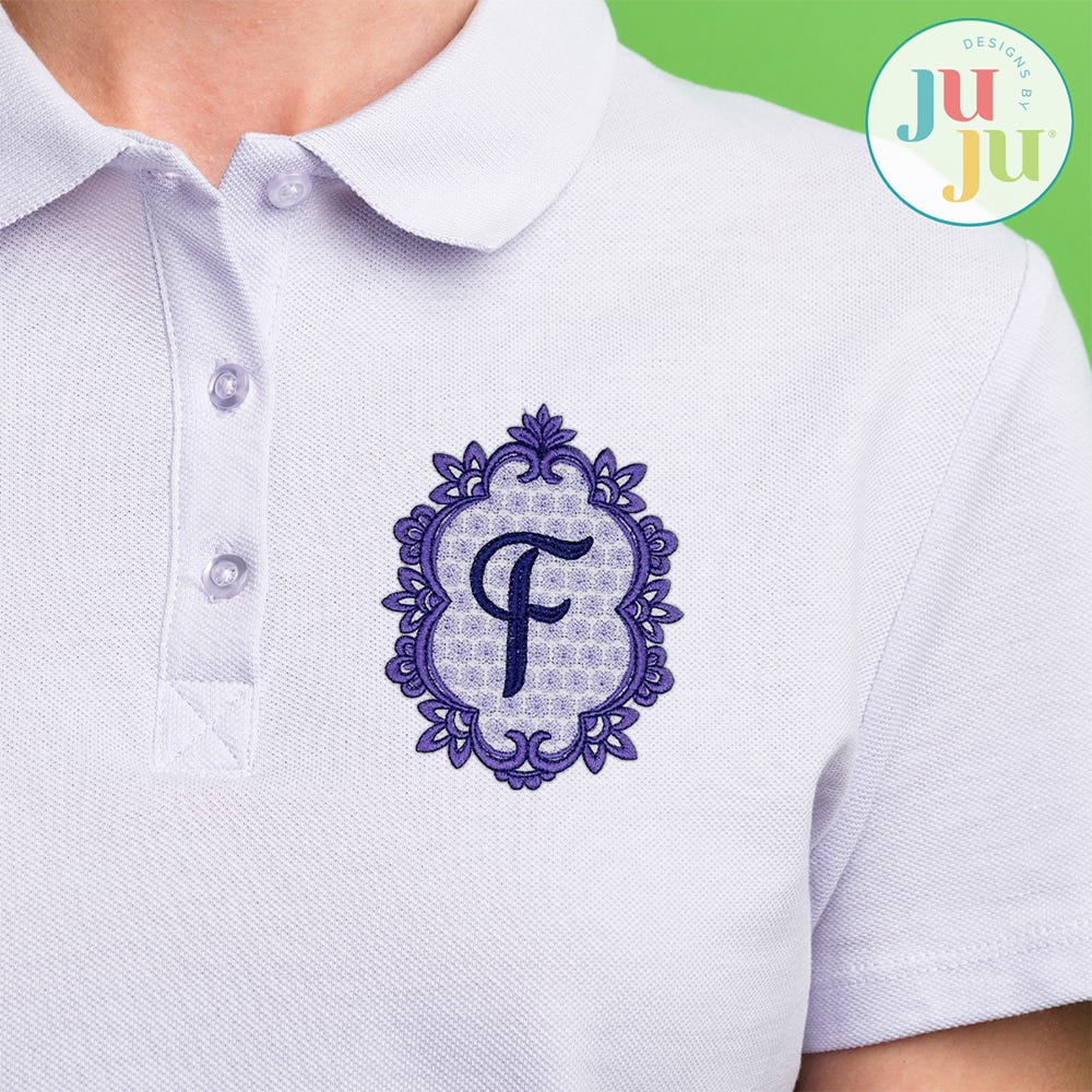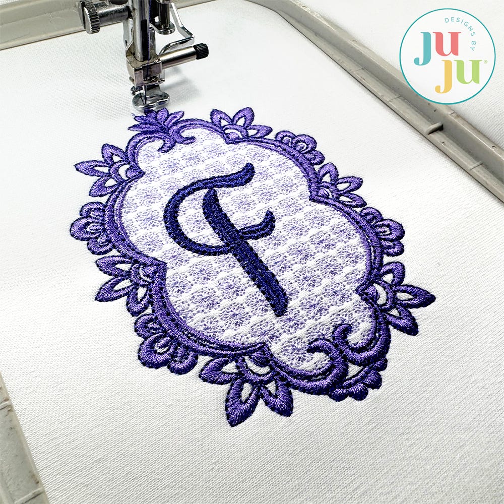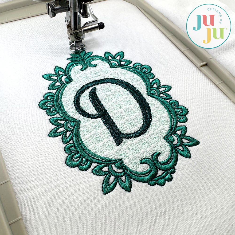 Add a touch of elegance to your project with our Cassandra Monogram. This embroidery-only monogram features lovely script letters on top of beautiful decorative satin stitch frames with bean stitch outlines, and flower motif stitch backgrounds.