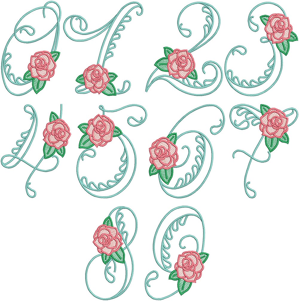 Our Catherine Sophia Numbers feature satin stitch numbers with beautiful roses that are a blend of sketch fill and satin stitch details. The light and airy "sketch" fill pattern allows for a quick stitch out. We do NOT recommend resizing designs with sketch elements in software.
