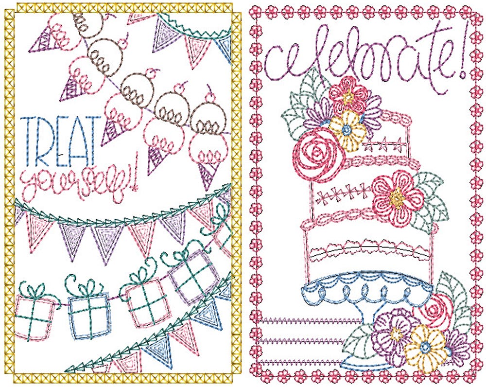 2 more adorable celebration greeting cards to say, "Celebrate!" and "Treat Yourself!"