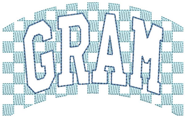 This Gram design is embroidery-only with two colorstops: a sketch fill checkered background with bean stitch outlines