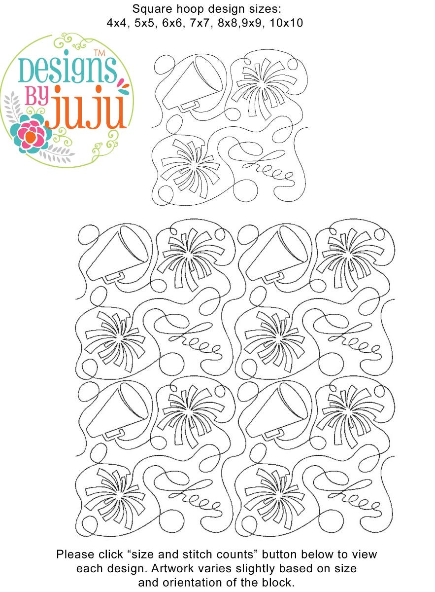 Please note: Both the scale of each pattern and arrangement of the motifs may vary based on the hoop size. Please click the "Size and Stitch Count" button to view the artwork for each size.