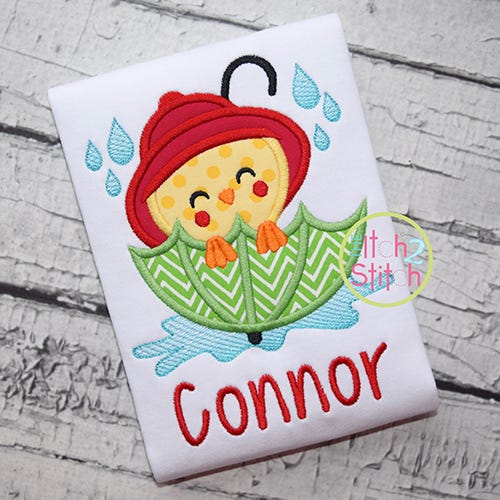 Even rainy days are a pleasure when you stitch this applique! Please note: The raindrops and puddle are a light and airy sketch fill stitch pattern.