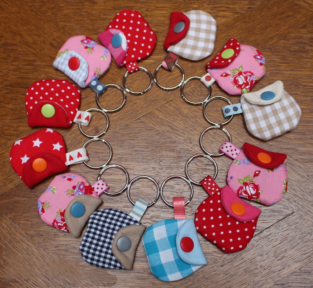 Finished size **approx** 2 inches x 1.5 inches when closed. There is a snap closure.