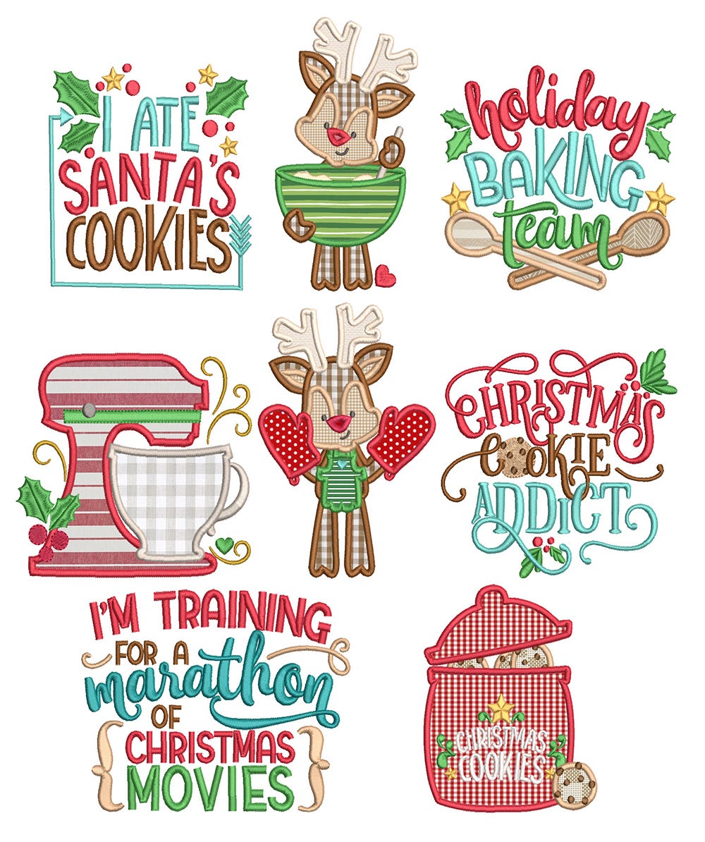 8 adorable and festive Christmas themed designs for bakers! *Please note some designs contain applique components