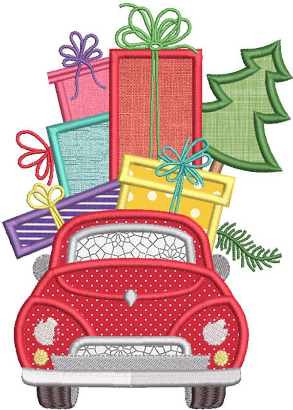 Take Christmas on the road! This single Car applique design is loaded with presents.