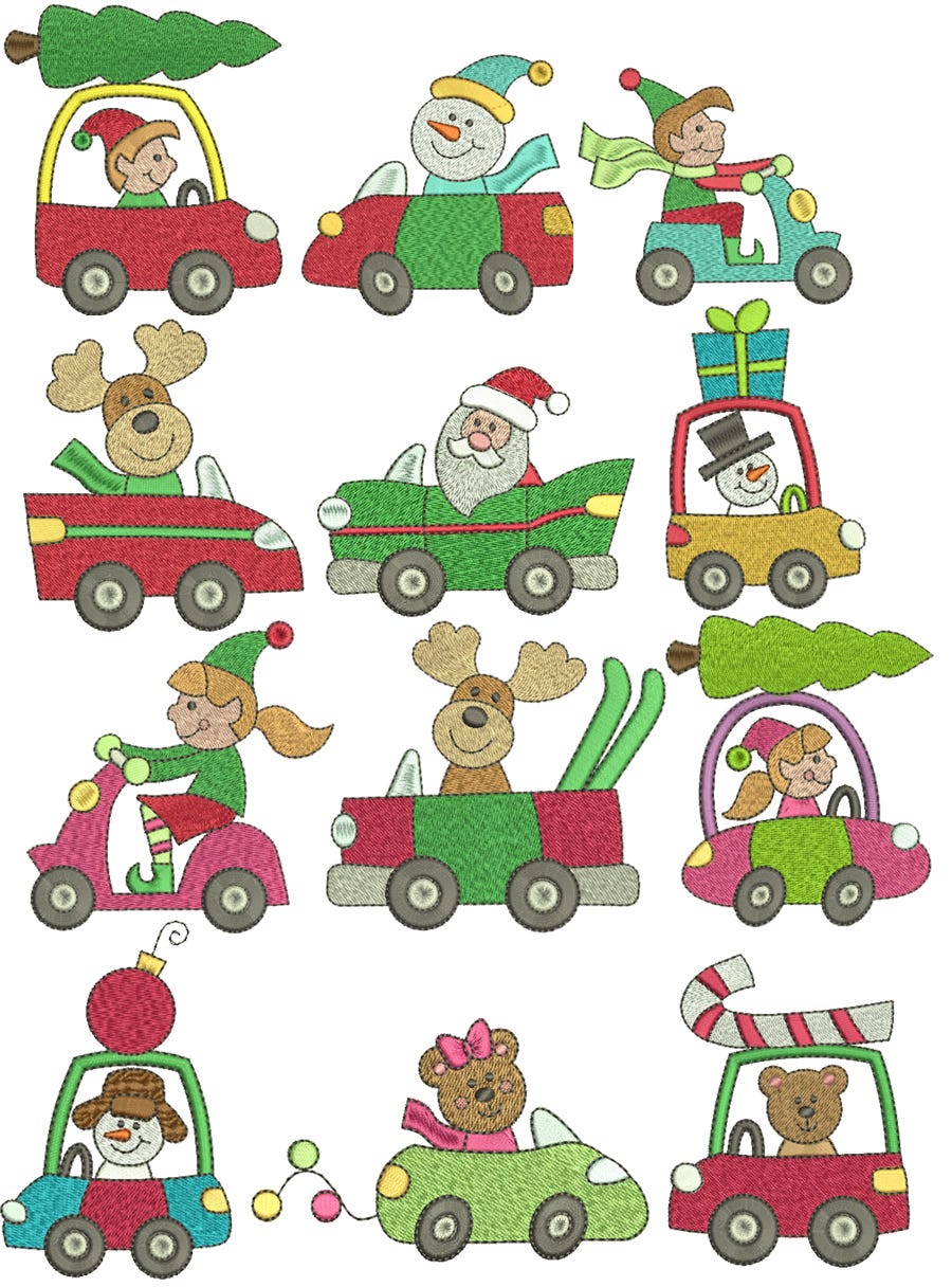 12 super cute Christmas cars design in filled stitch!