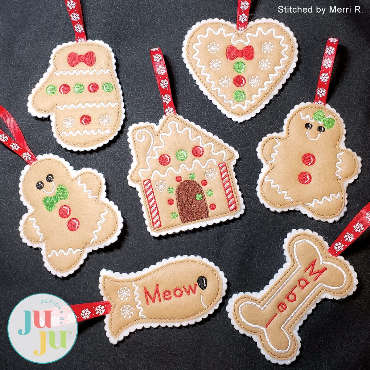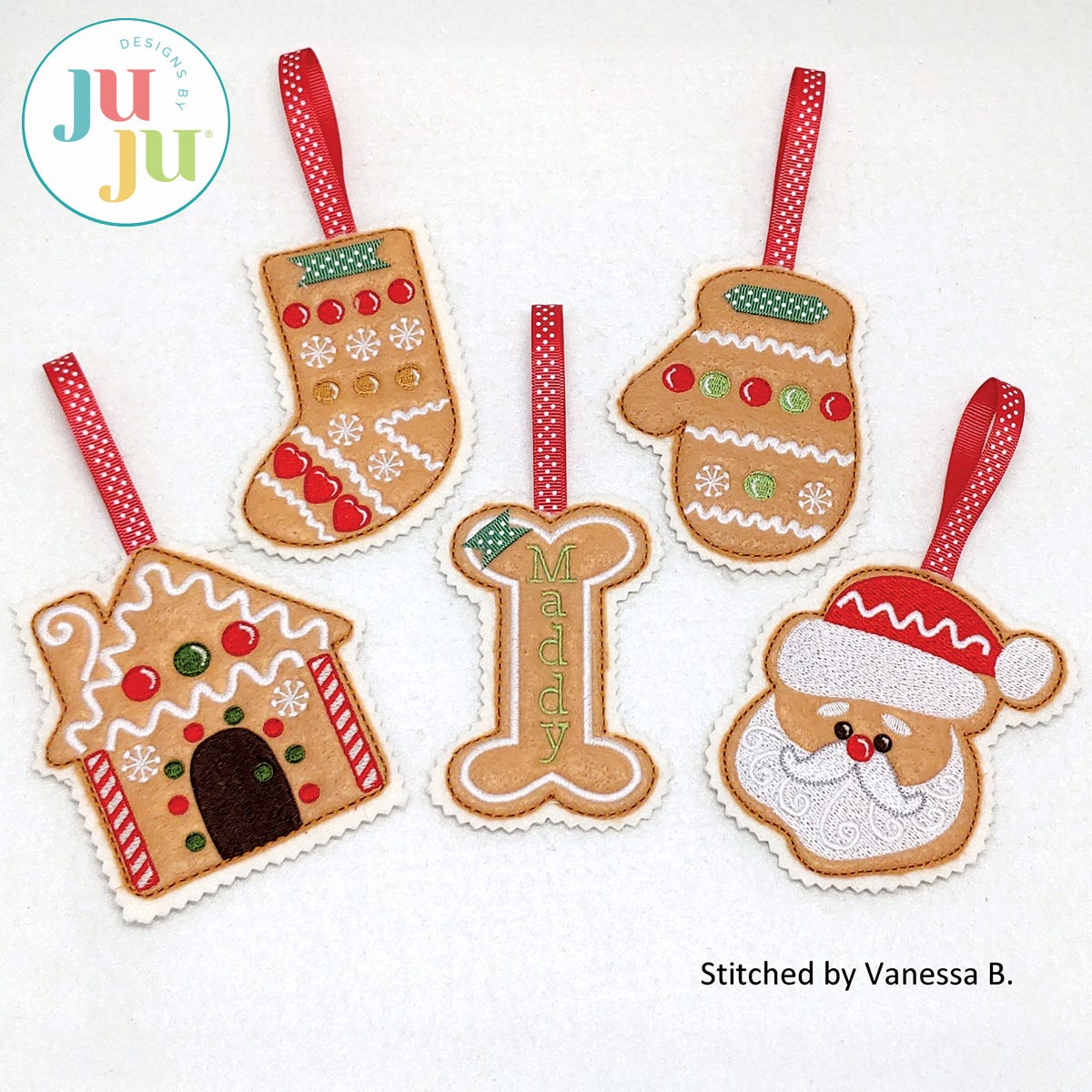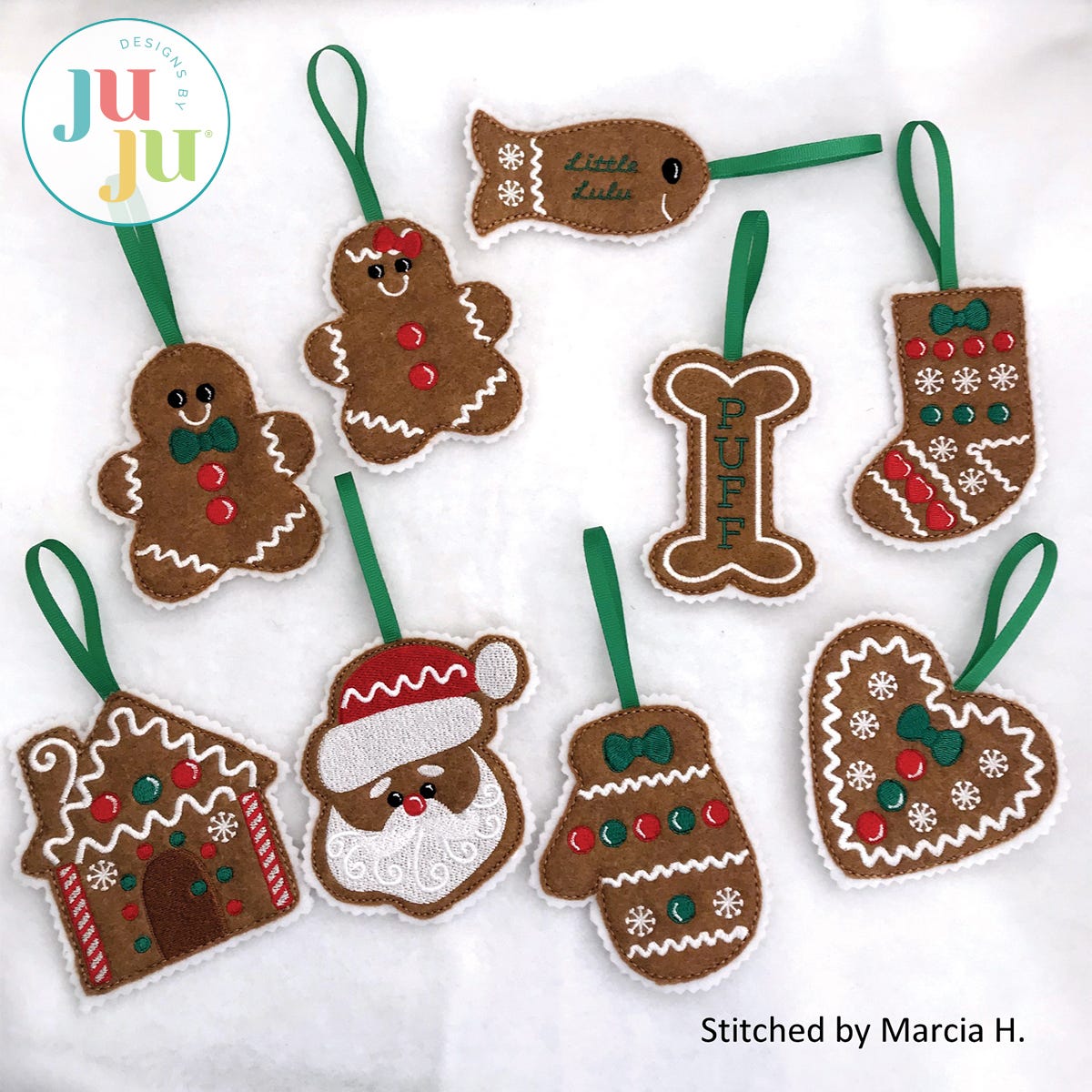 These in the hoop cookies for the 4x4 hoops are guaranteed calorie free!! This set of 9 designs is stitched on felt. No hand or machine stitching required. Leave as stitched or add a little bling by applying crystals, buttons, bows, etc. Stitches up very quickly.