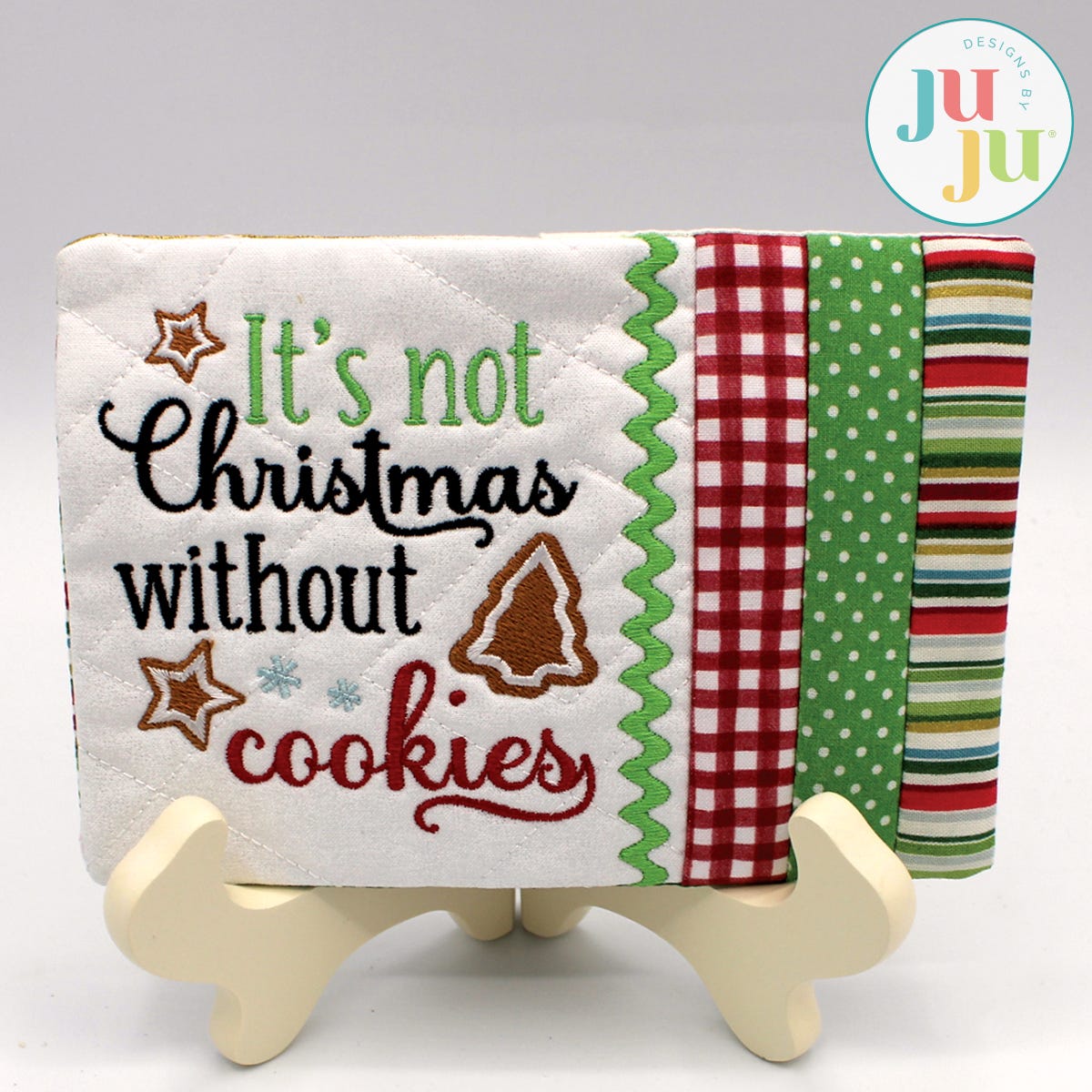 This fun Christmas design comes in 2 sizes, to fit either the 4x4 or 5x7 hoops. You can see it stitched out on a blank quilted mug rug. We do have a mini placemat that matches (Sold separately. Please see our You Might Also Like below).