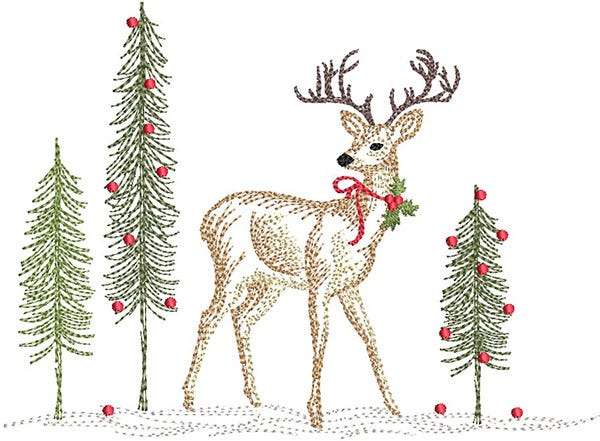 One lovely Country Christmas design with a vintage feel! This single is primarily a bean stitch design for a handstitched look, with a few satin and fill stitch details.