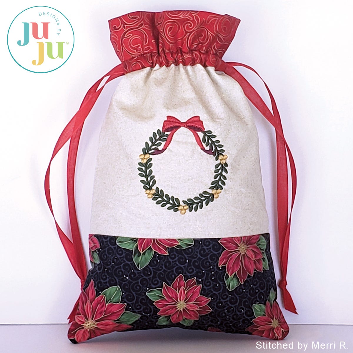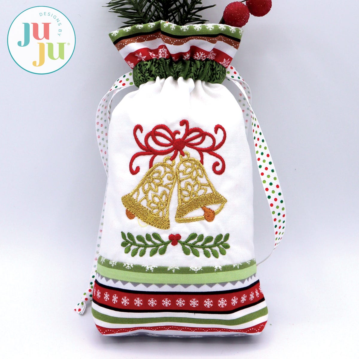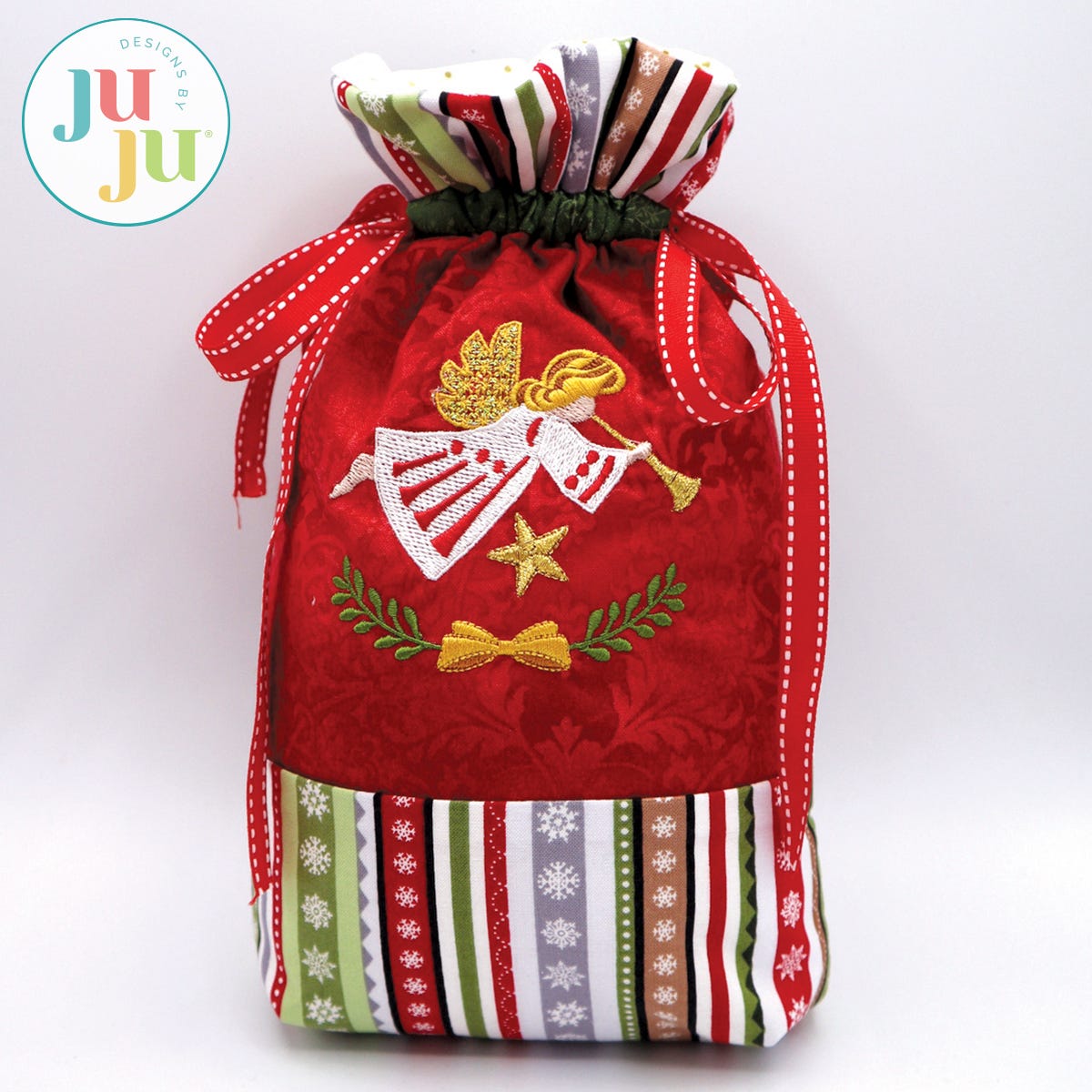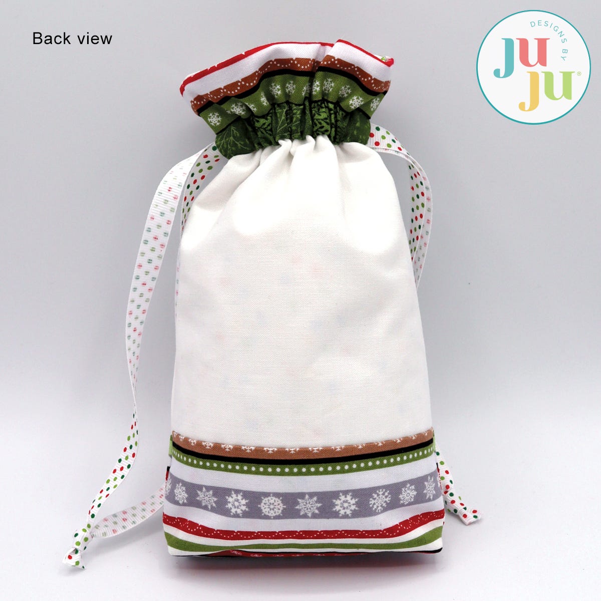Do you have some beautiful Christmas fabrics and are looking to use them? Here is a beautiful and eco-friendly way to present small gifts this Christmas. This project is perfect for use with small Christmas border fabrics. A plain bag is included so you can use it for other occasions as well.