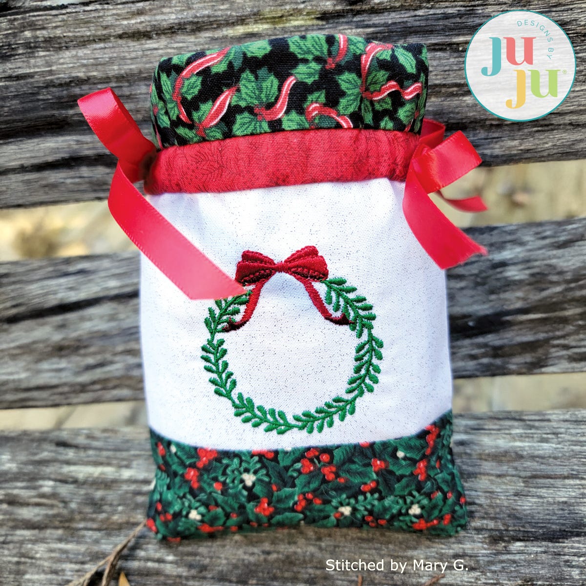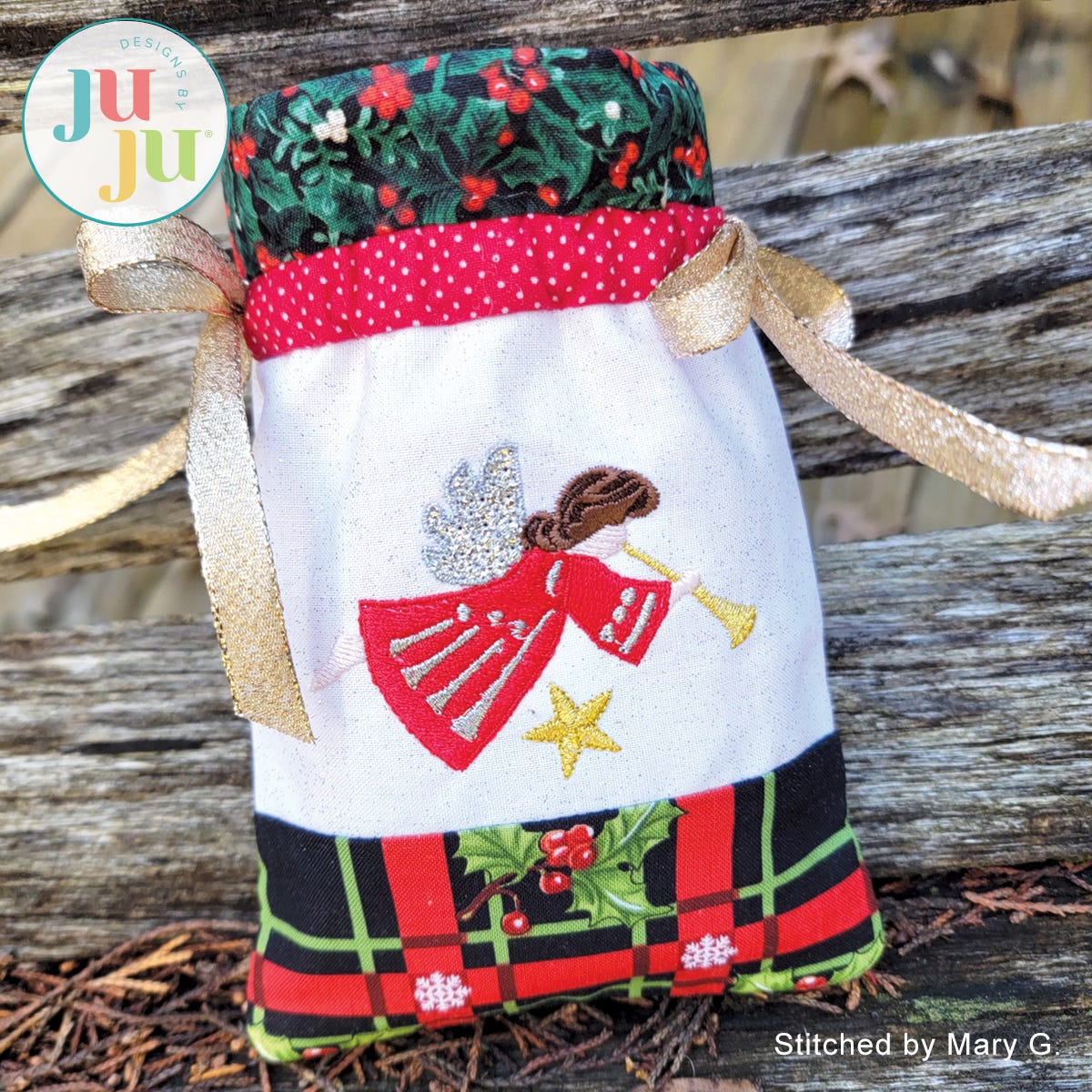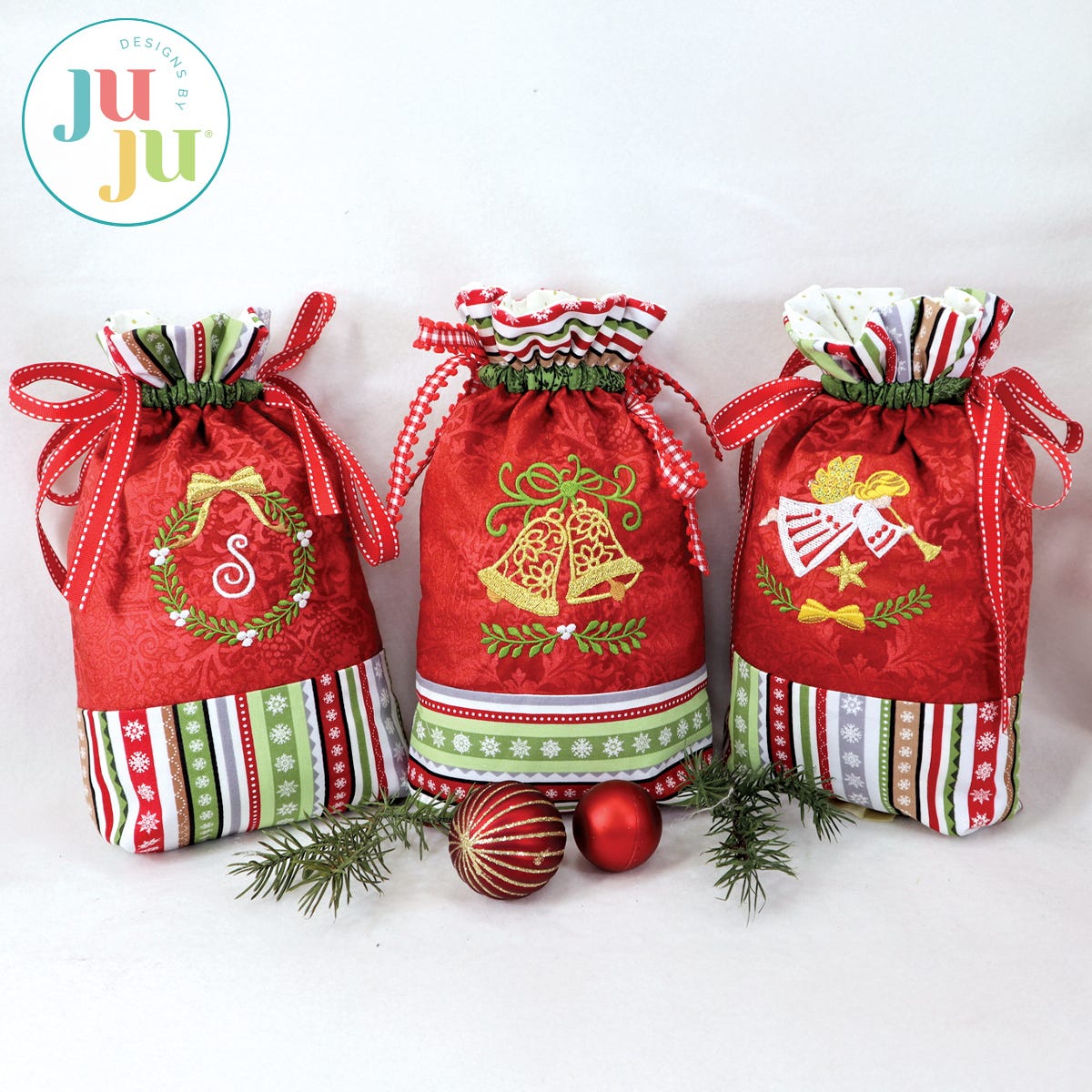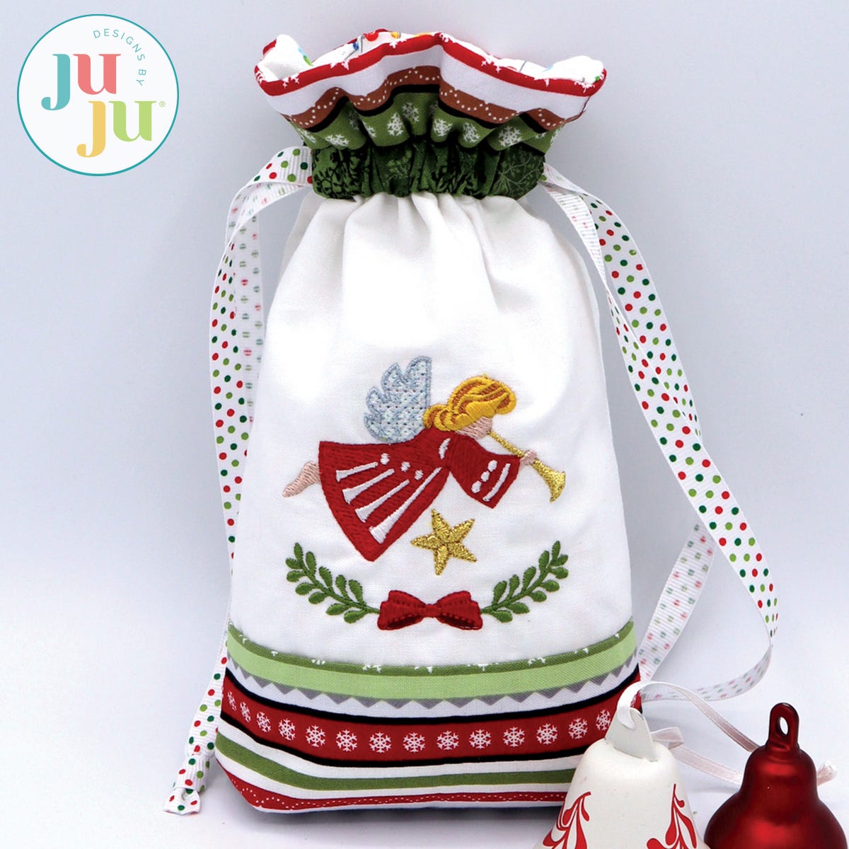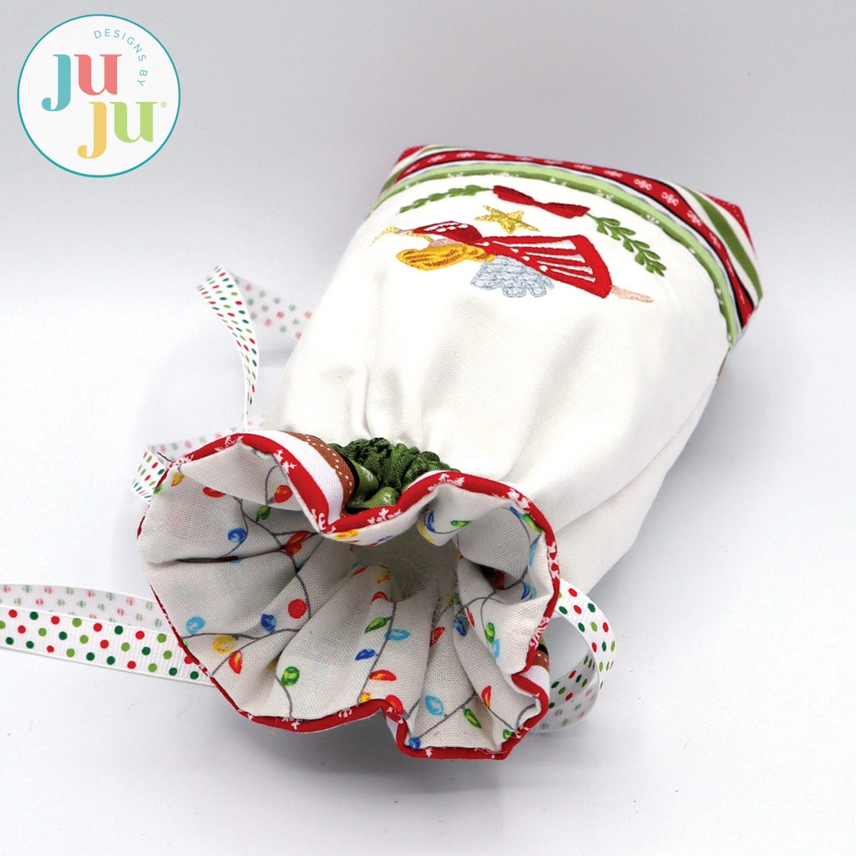 Do you have some beautiful Christmas fabrics and are looking to use them? Here is a beautiful and eco-friendly way to present small gifts this Christmas. This project is perfect for use with small Christmas border fabrics. A plain bag is included so you can use it for other occasions as well.