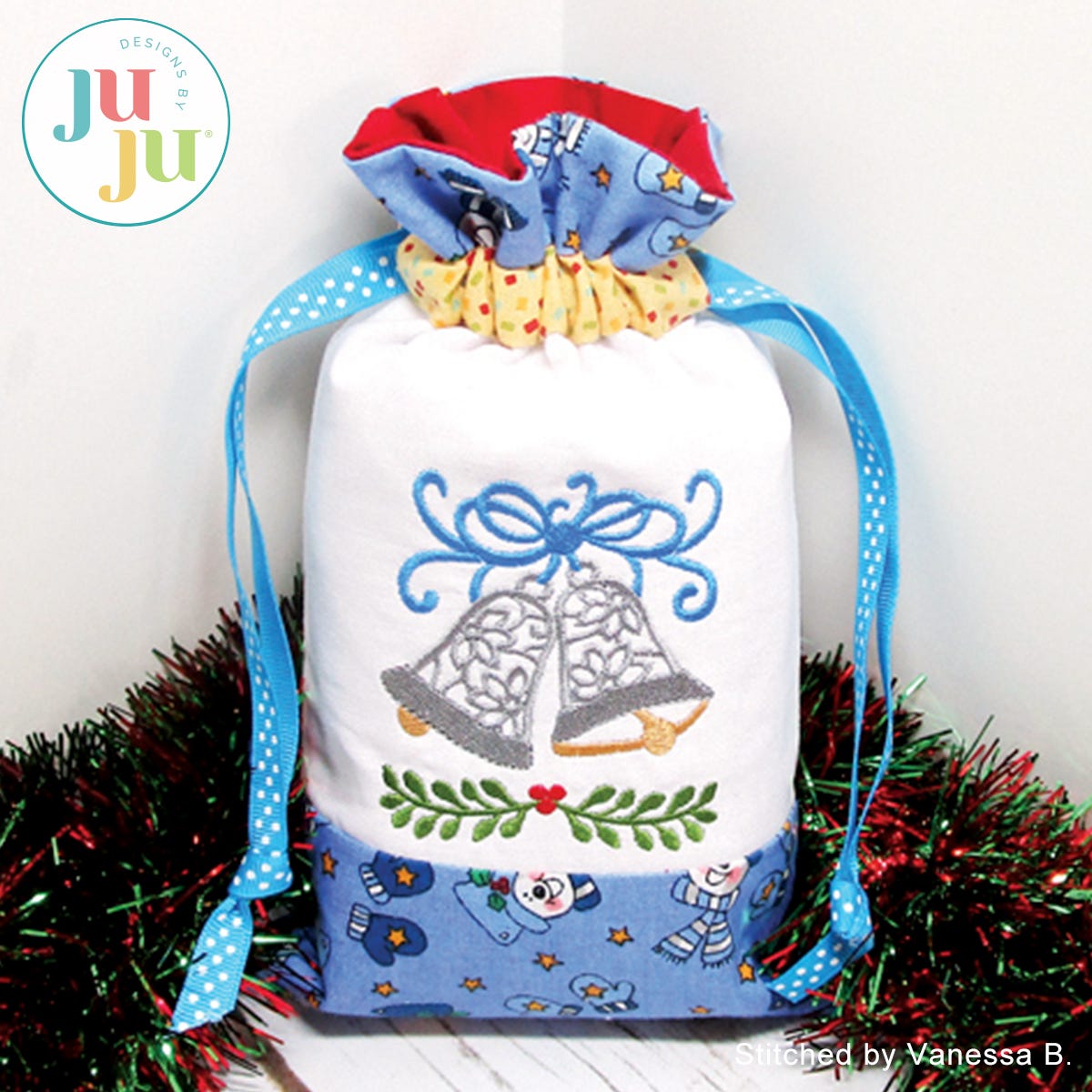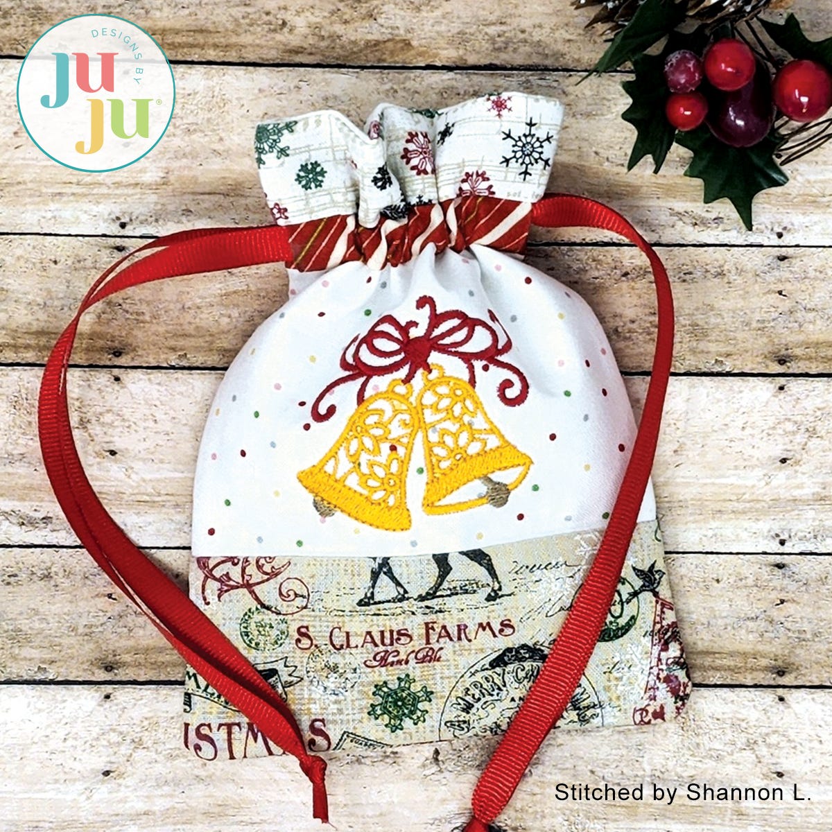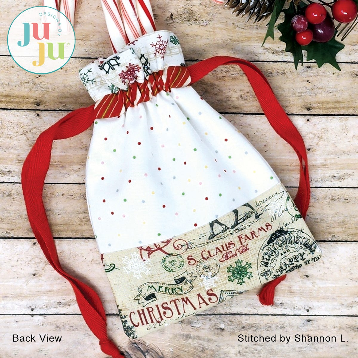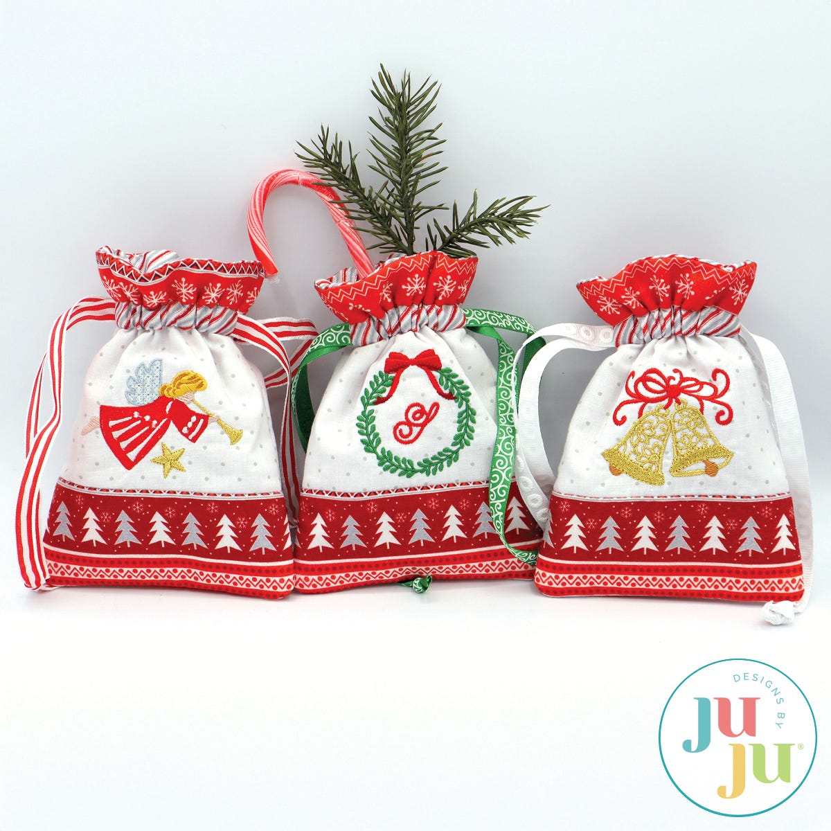 Do you have some beautiful Christmas fabrics and are looking to use them? Here is a beautiful and eco-friendly way to present small gifts this Christmas. This project is perfect for use with small Christmas border fabrics. A plain bag is included so you can use it for other occasions as well.