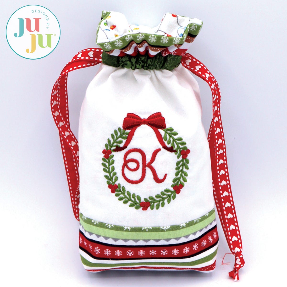 The wreath on one of the fronts is sized to hold a 0.60" letter should you choose to personalize your gift bag.