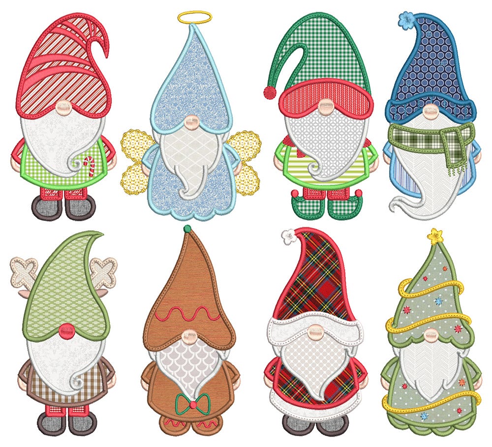 8 MORE super sweet Christmas gnomes in applique!