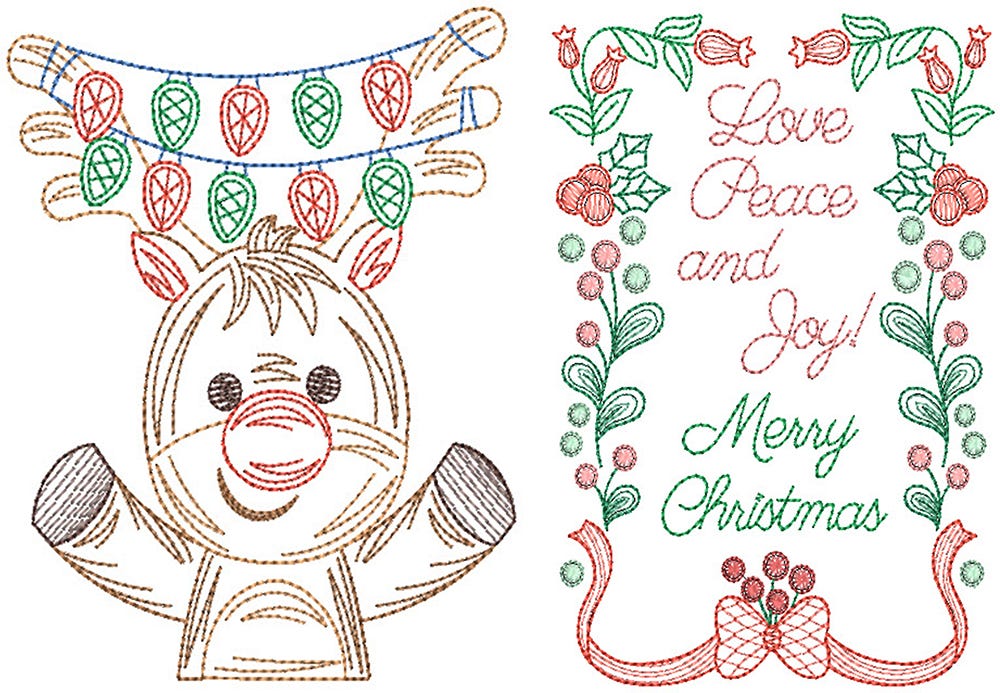 2 sizes included: 4x6 and 5x7Ā Ā **you must have at least a 5x7 hoop to use these designs** These designs are not available for the 4x4 hoop.