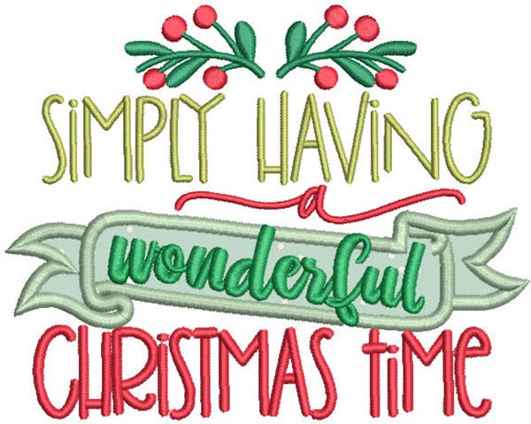 4 more festive Christmas lyric designs! These designs are embroidery only featuring satin stitch lettering with satin, sketch, and fill stitch design elements. "Simply Having a Wonderful Christmas Time" also includes an applique banner in the background.