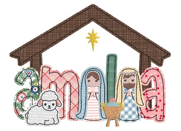 Nativity Alphabet Embellishment Kit includes 29 design files in nine sizes, scaled to coordinate with our Daisy Doodle Bean Stitch Applique Alphabet, sold separately. For example, the embellishments in the 3" folder are perfectly sized for use with the 3" alphabet. Please note: the bonus stable design requires large hoops and comes in eight sizes. Please click the "Size and Stitch Counts" button for exact dimensions of each design.