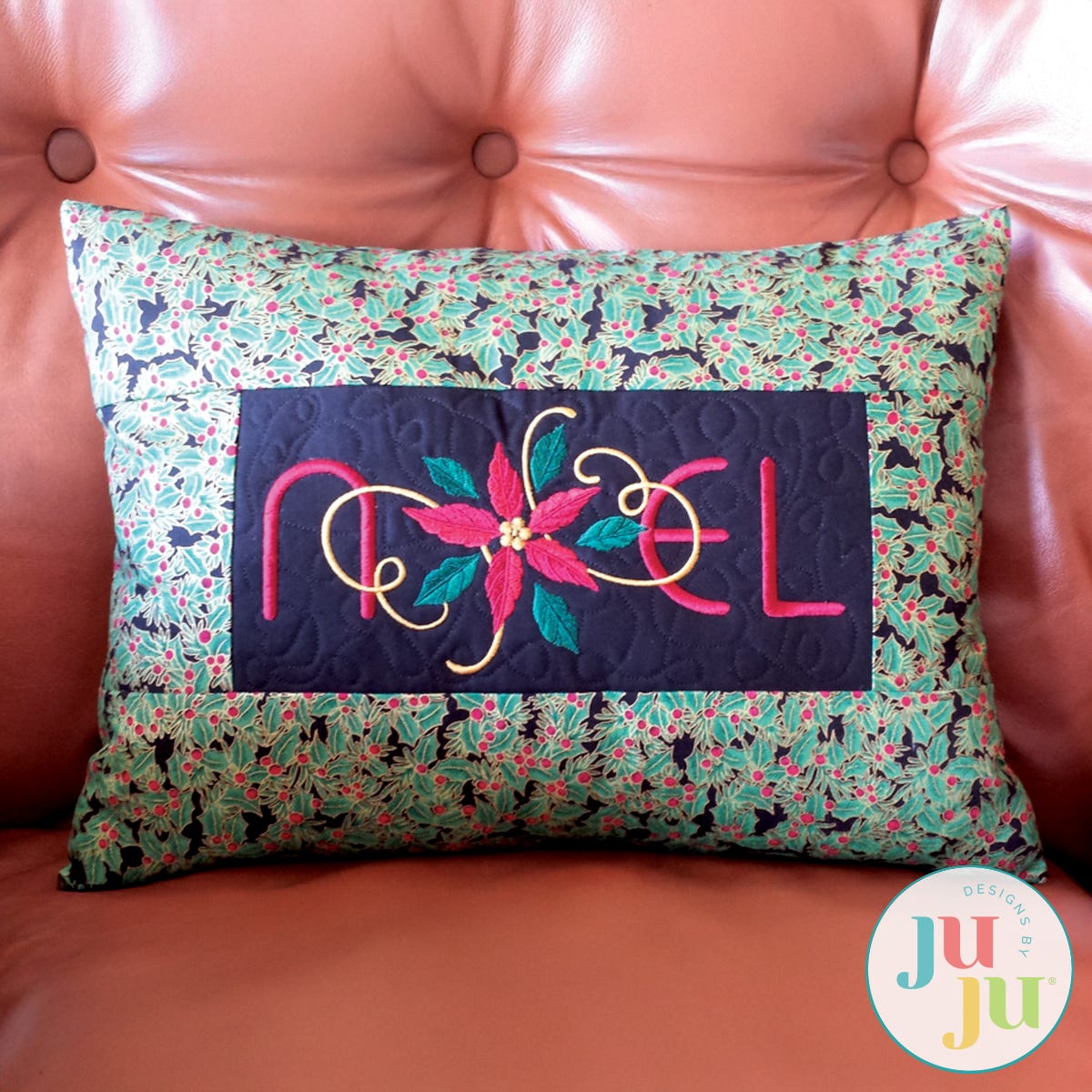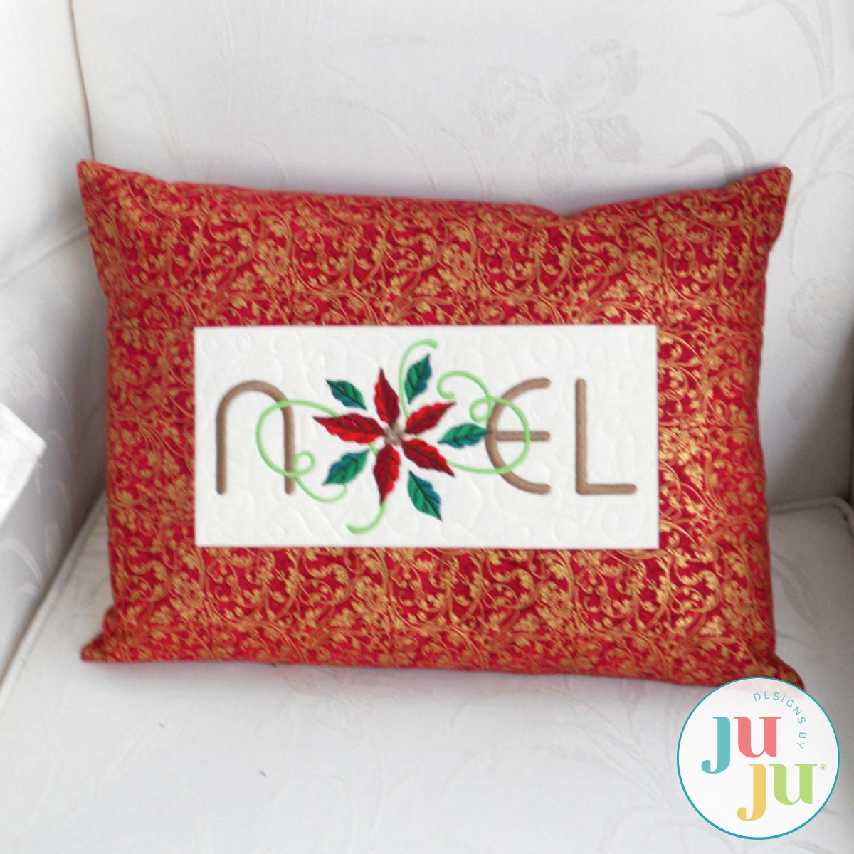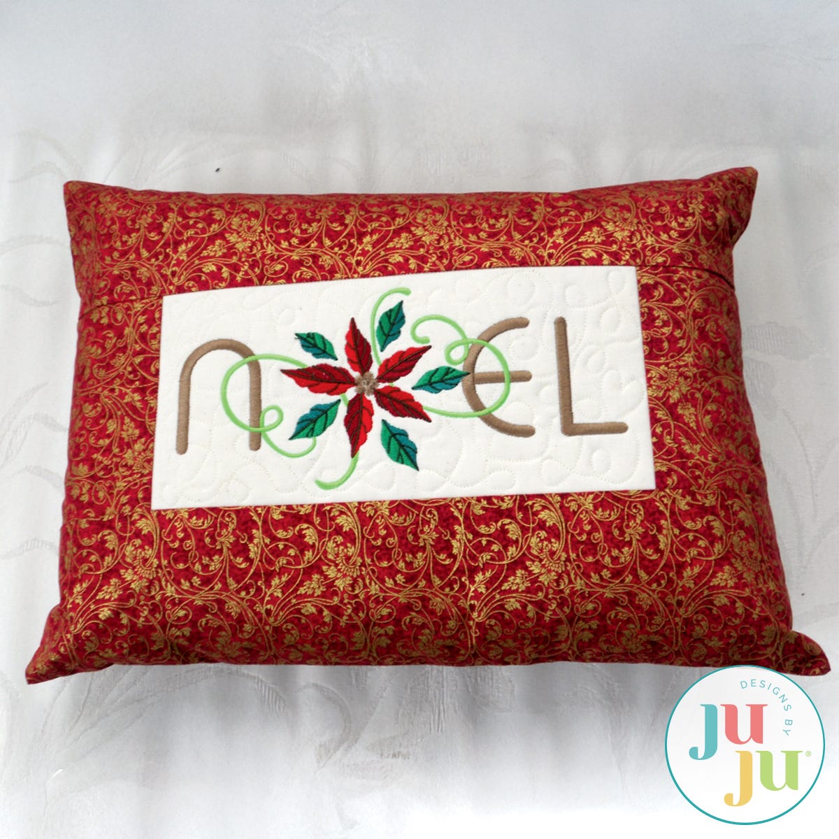 This Christmas Pillow-Noel design will allow you to make a 12" x 16" pillow almost completely done in the hoop. The pillow's center background is meander quilted and the sides are pieced onto the center, all done in the hoop. The pillow's back has a Velcro closure, also stitched while in the hoop. The side seams are sewn on the sewing machine. Thorough instructions with many photos will guide you through the process. A fun way to add a festive touch to your home decor. Makes a great gift as well. Also included is the pillow front without design for you to drop in any design of your choosing.