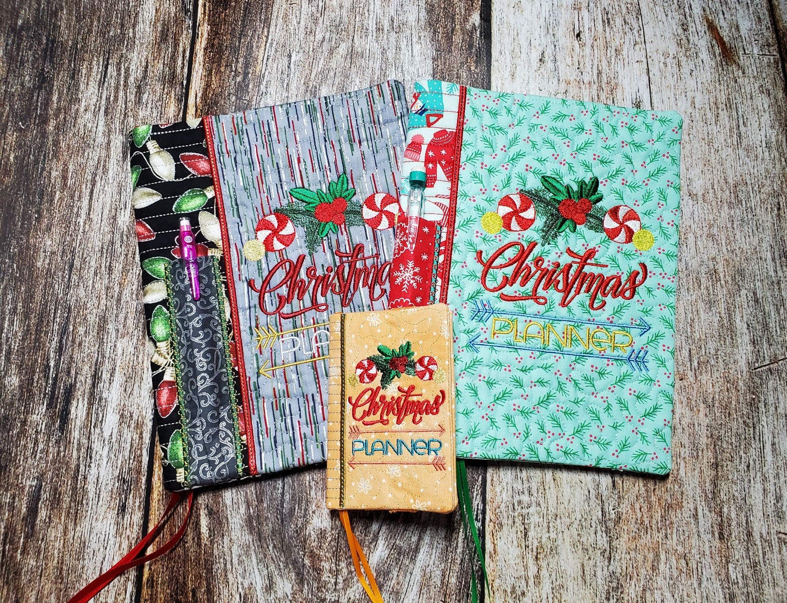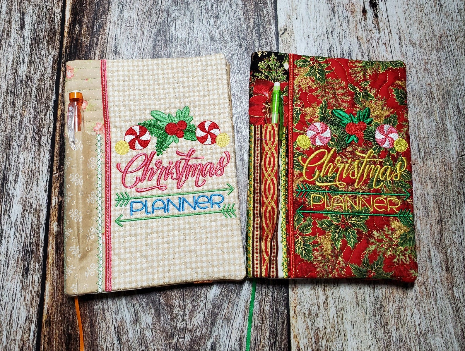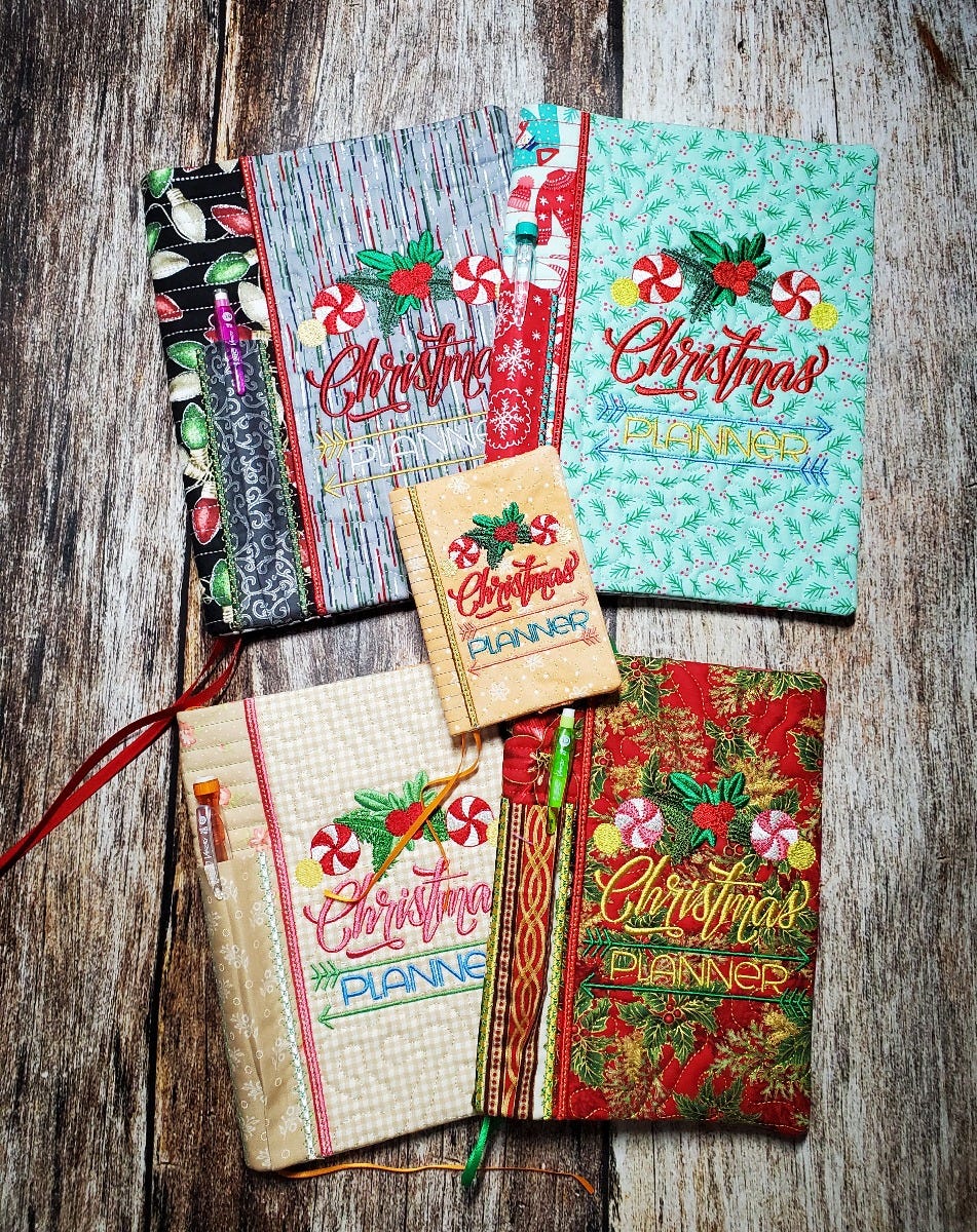 You will love these in the hoop Christmas notebook Covers! Each cover includes the word art saying "Christmas Planner" as shown.