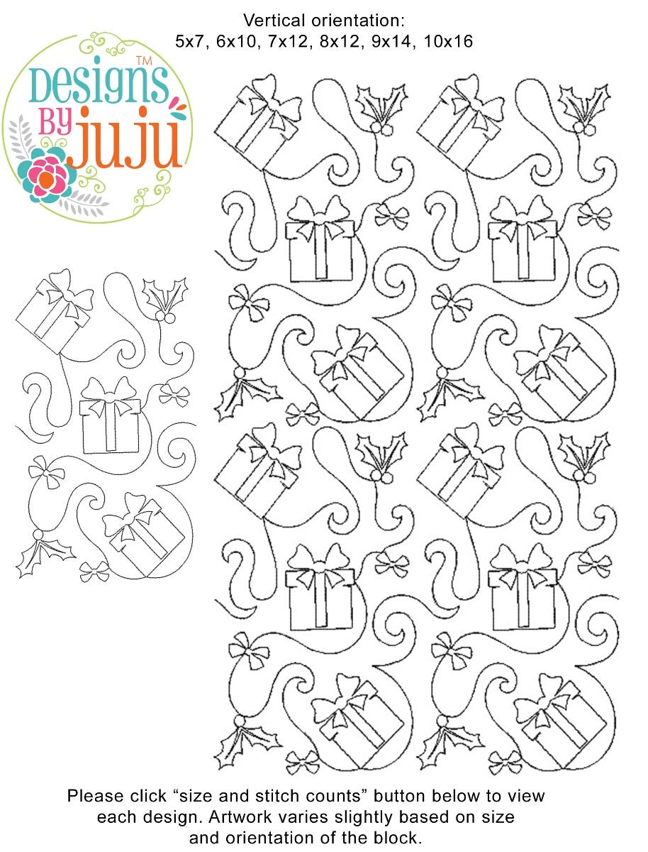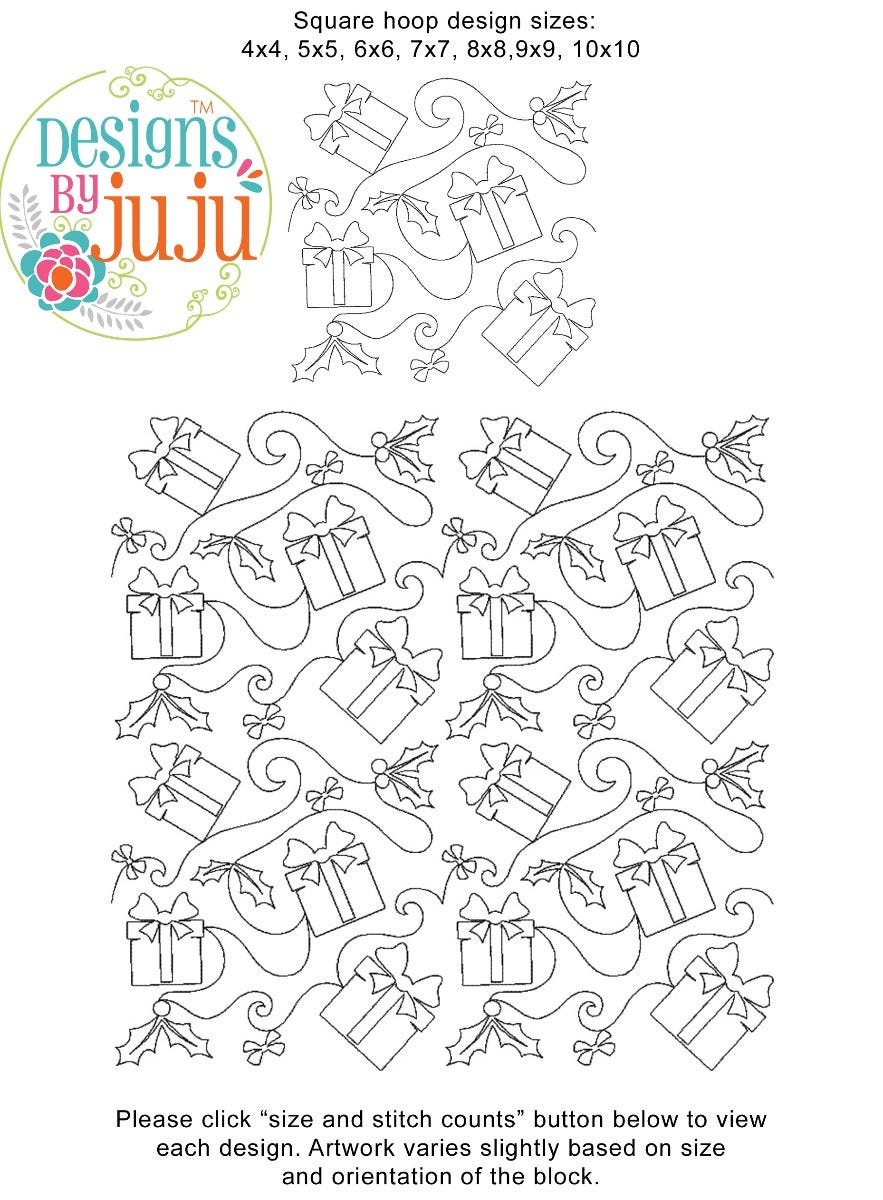 Please note: Both the scale of each pattern and arrangement of the motifs may vary based on the hoop size. Please click the "Size and Stitch Count" button to view the artwork for each size.