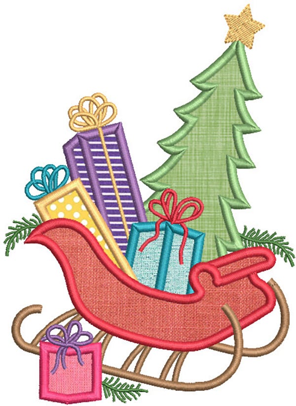This Christmas Sleigh applique is loaded and ready to deliver presents!