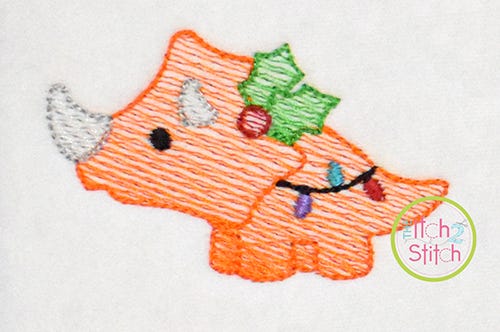 Please note this is not applique, nor is it a traditional fill stitch design. The light and airy "sketch" fill pattern allows for a quick stitch out. The space between each line of stitching varies such that it is more dense in one part of an object than another to create the shading effect. Each object is finished off with a triple bean stitch outline. We do not recommend resizing this design in software.