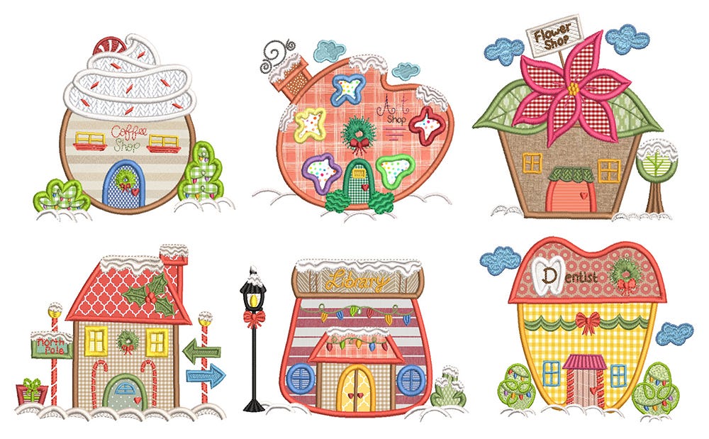 6 super sweet and perfectly festive Christmas village buildings in applique!