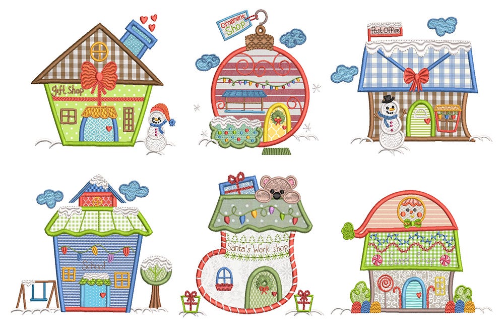 6 more super sweet and perfectly festive Christmas village buildings in applique!