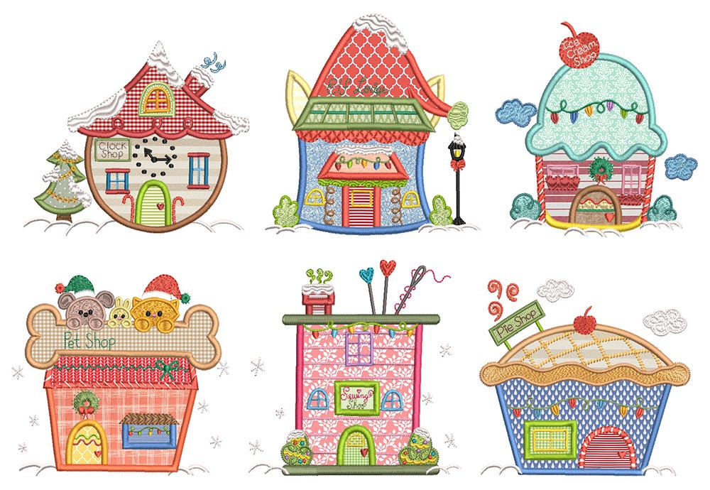 6 more super sweet and perfectly festive Christmas village buildings in applique!
