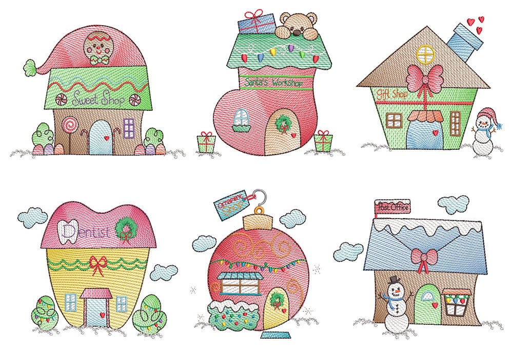 6 more lovely Christmas village designs in our popular "sketch" style!Ā Ā 2 sizes included: 4x4 & 5x7