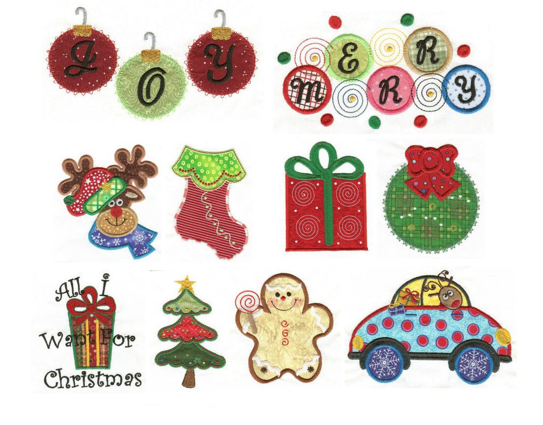 Ā 10 delightfully fun and whimsical Christmas applique designs. Great for all of your Christmas sewing!