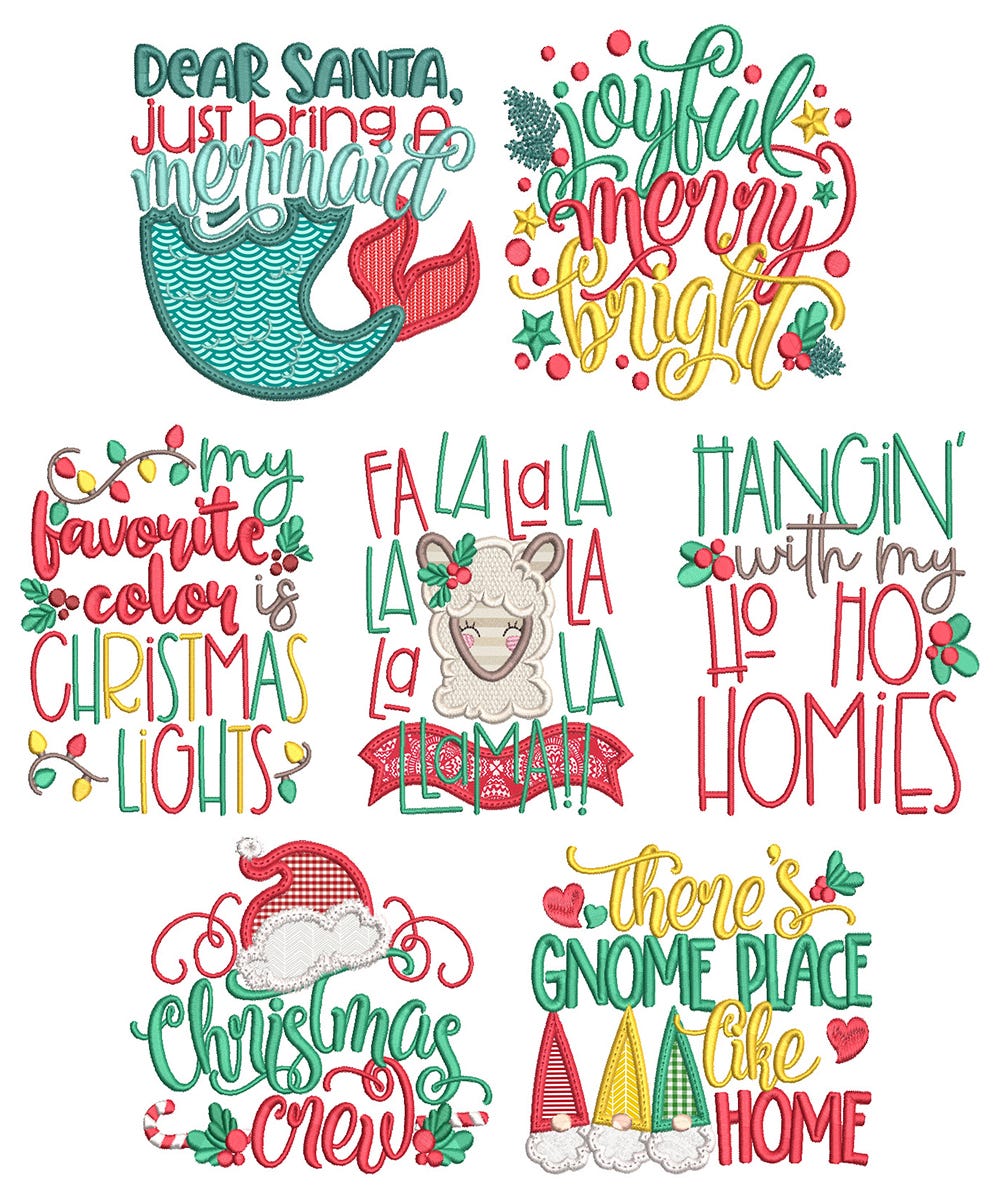 *Please note that the following designs contain applique components: Dear Santa just bring me a mermaid / Christmas crew / There's no place like gnome / Fa La La La La Llama!!Ā