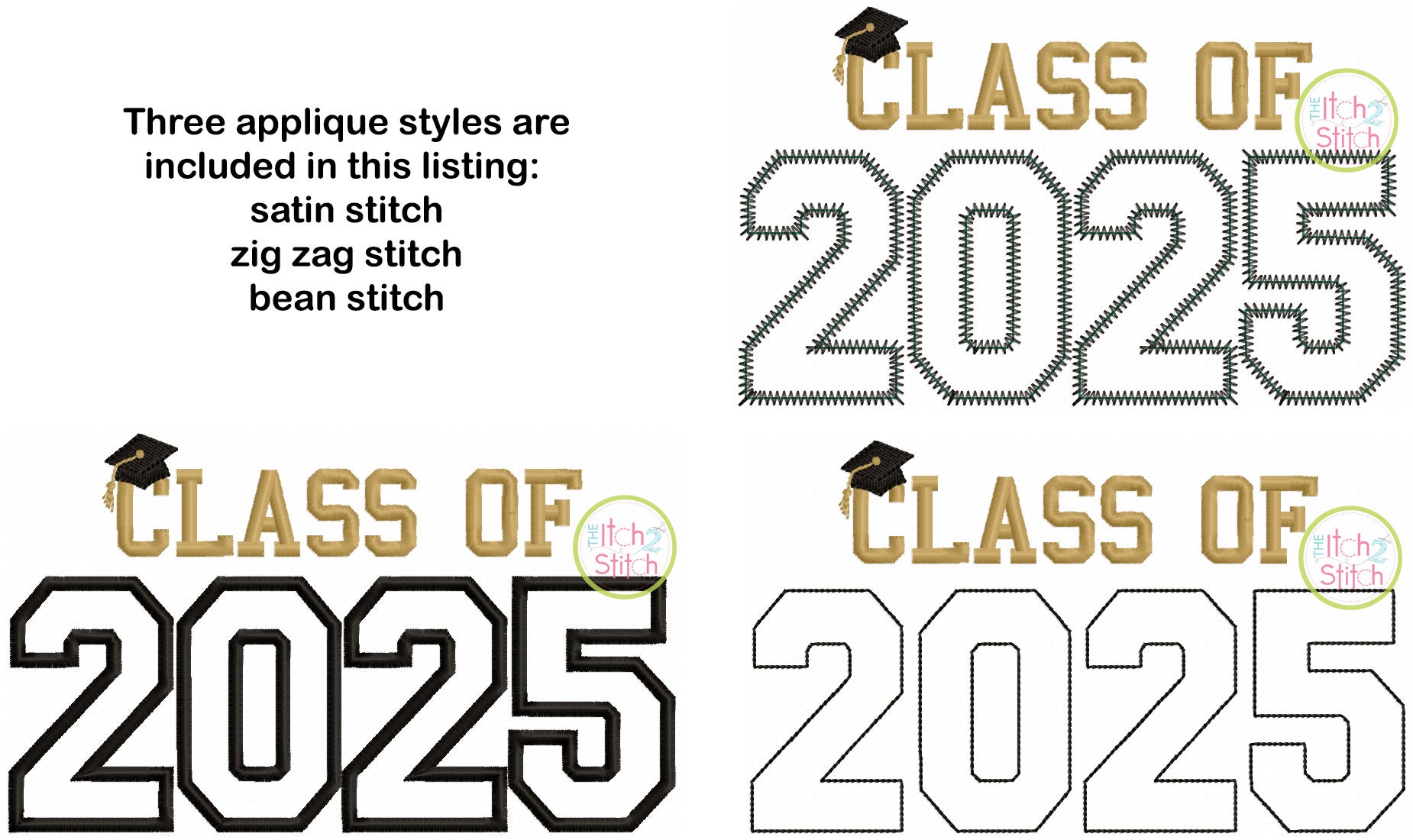 Three versions are included with purchase: satin stitch applique, zig zag applique and bean stitch applique. Please note a 4x4 size is NOT included.