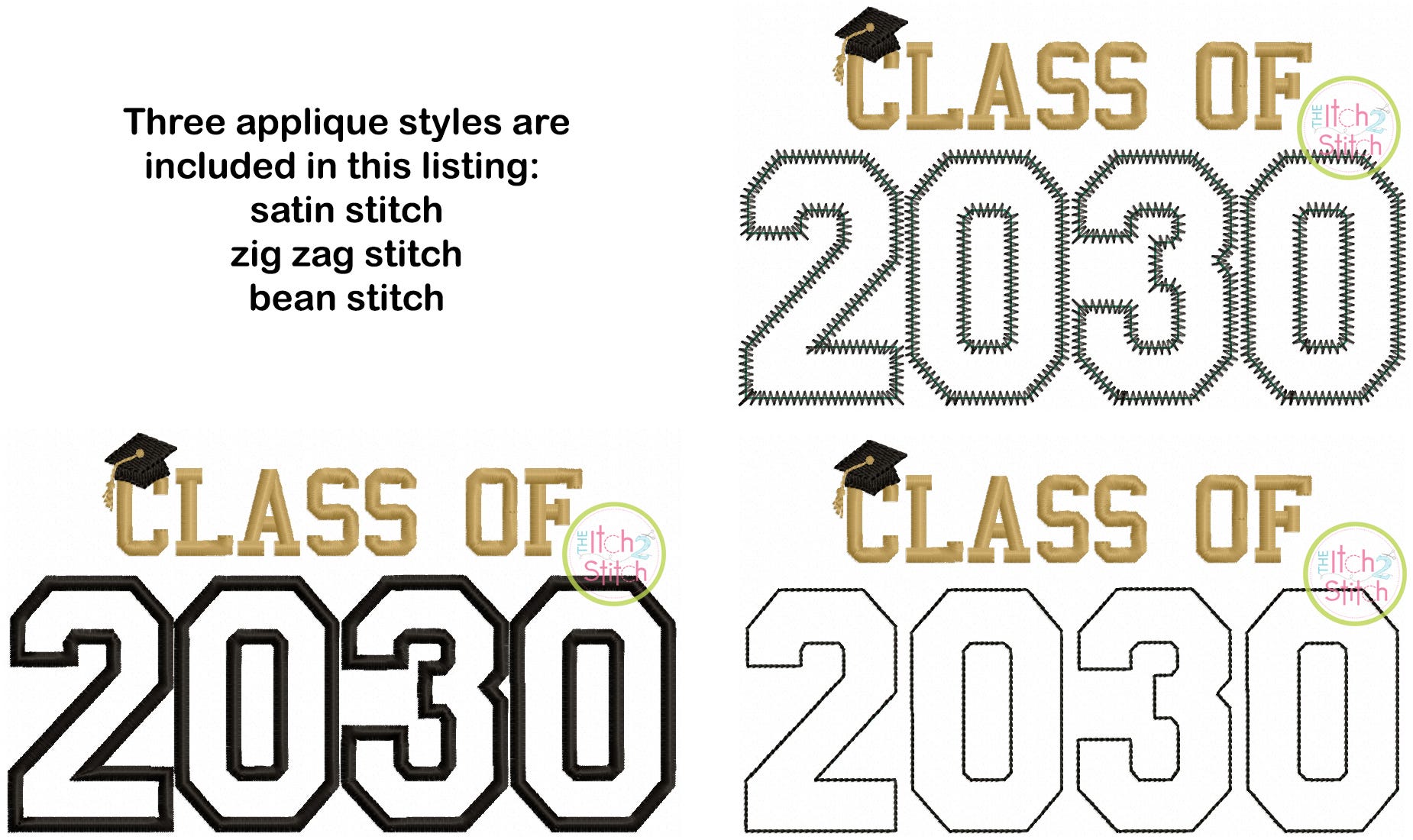 Three versions are included with purchase: satin stitch applique, zig zag applique and bean stitch applique. Please note a 4x4 size is NOT included.