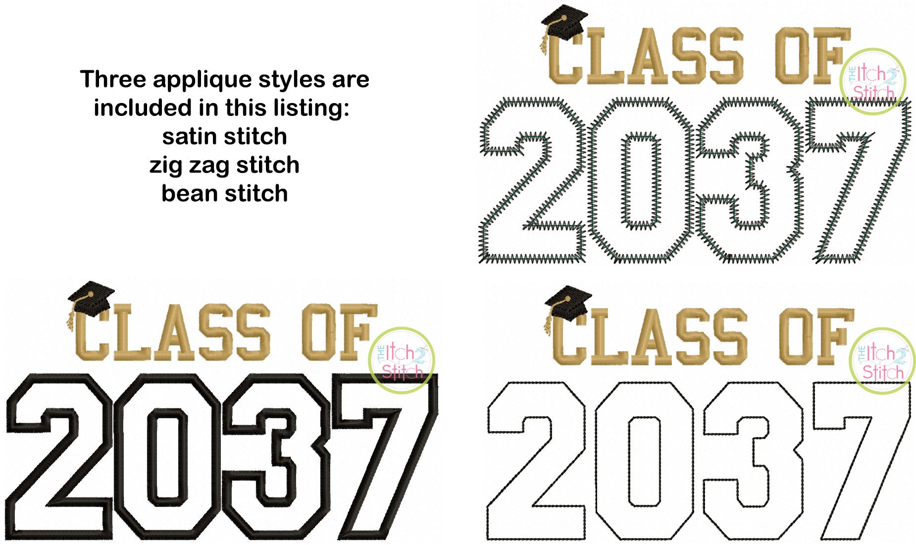 Three versions are included with purchase: satin stitch applique, zig zag applique and bean stitch applique. Please note a 4x4 size is NOT included.