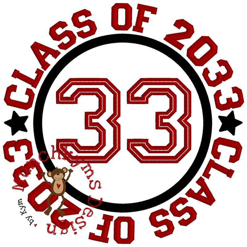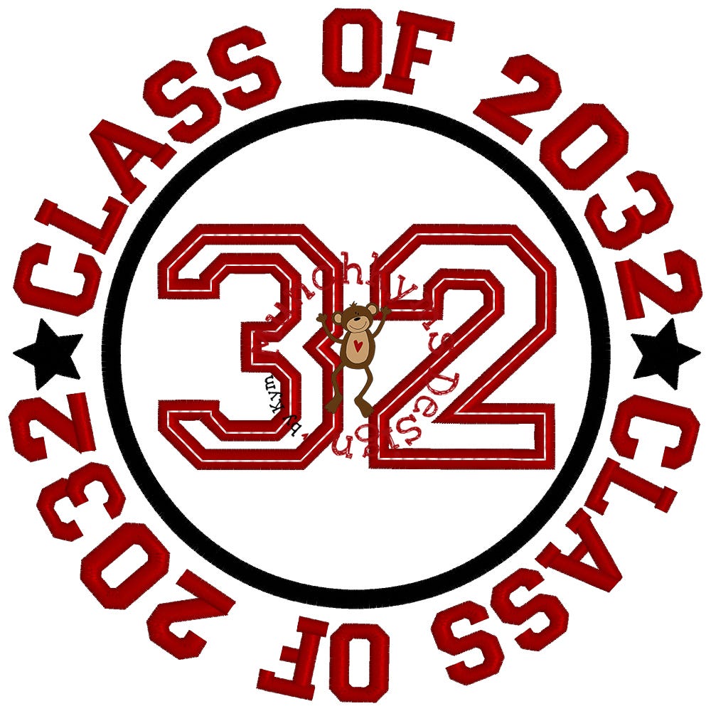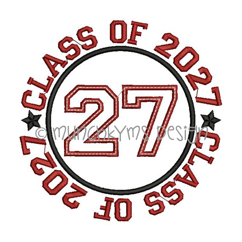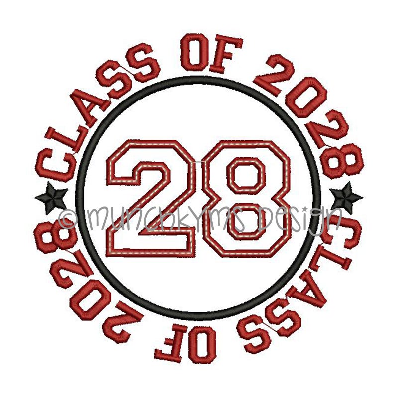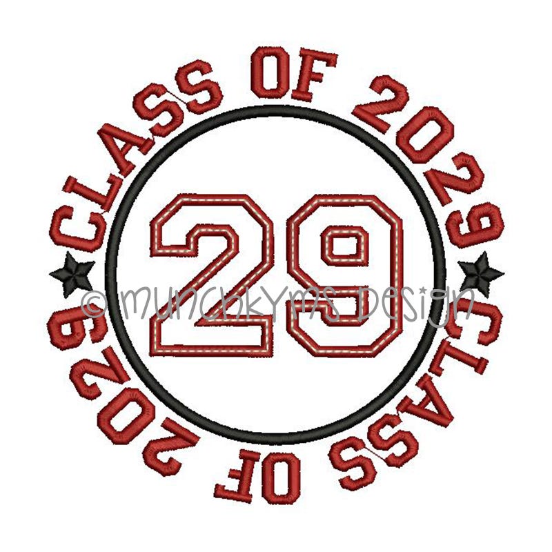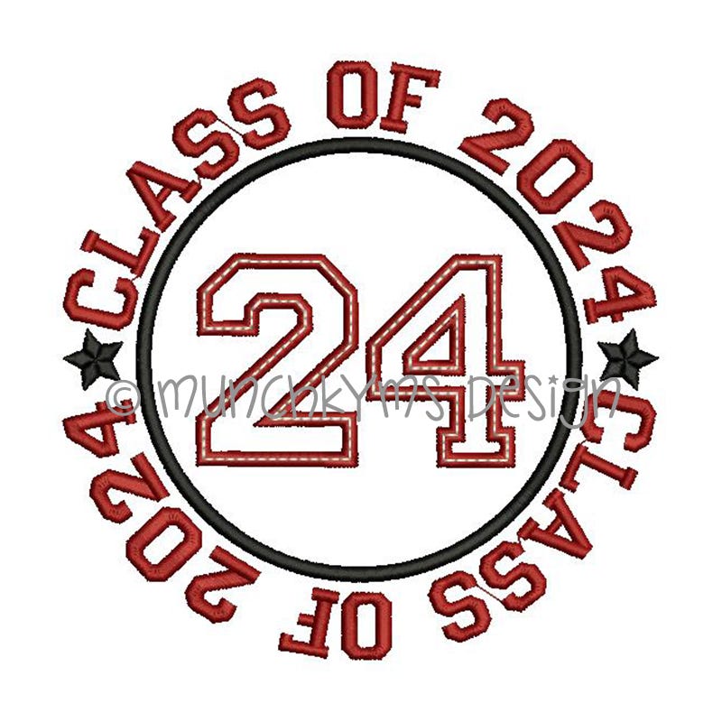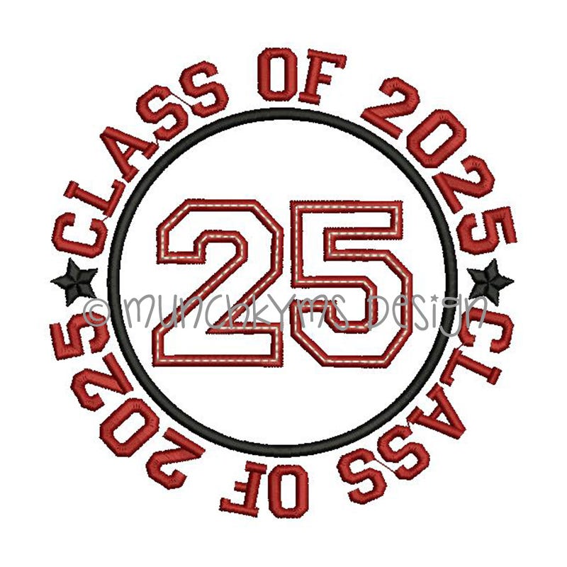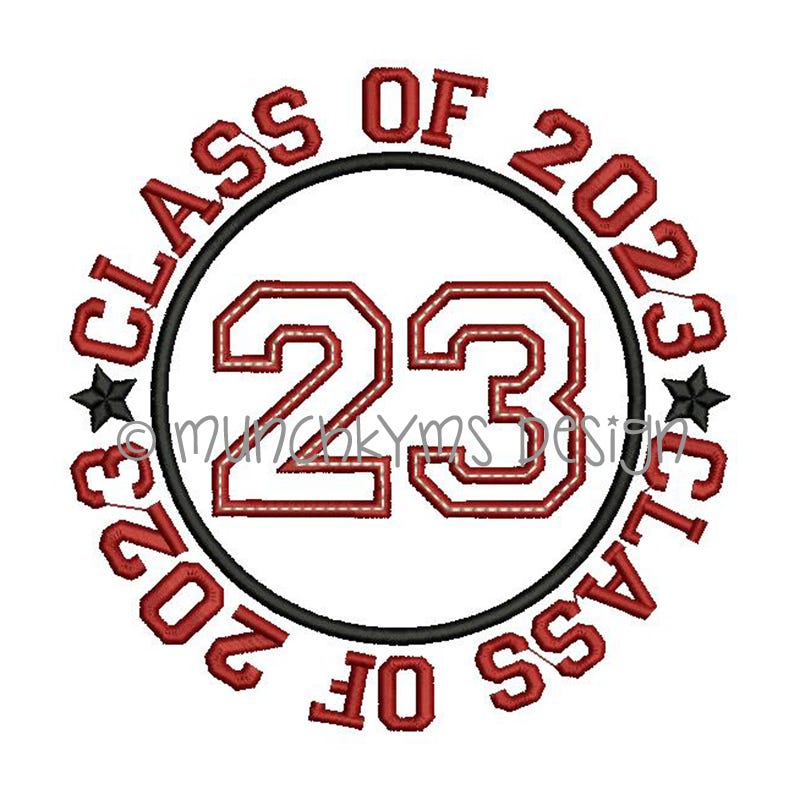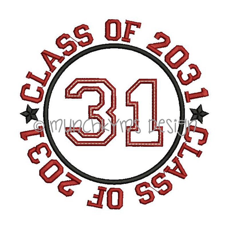 The "CLASS OF" text that surrounds the applique circle IS included in the design file.