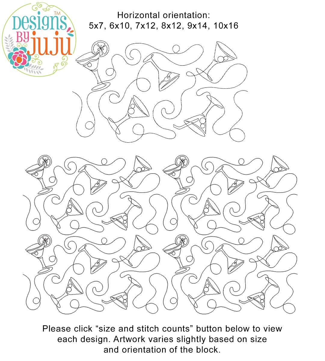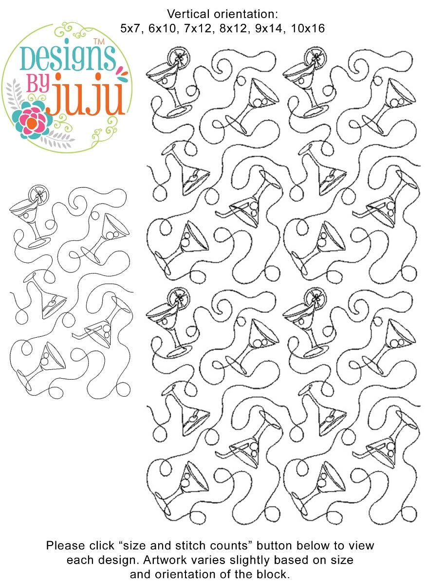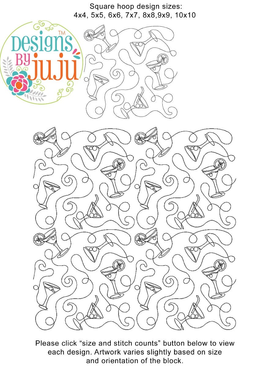 Please note: Both the scale of each pattern and arrangement of the motifs may vary based on the hoop size. Please click the "Size and Stitch Count" button to view the artwork for each size.