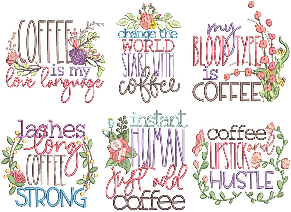 6 more pretty, coffee inspired word art designs!