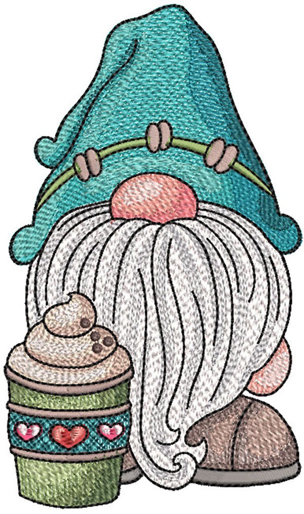 This gnome loves coffee a latte! This single design features multiple color layers of lighter density fill to create a blended, variegated, textured look.