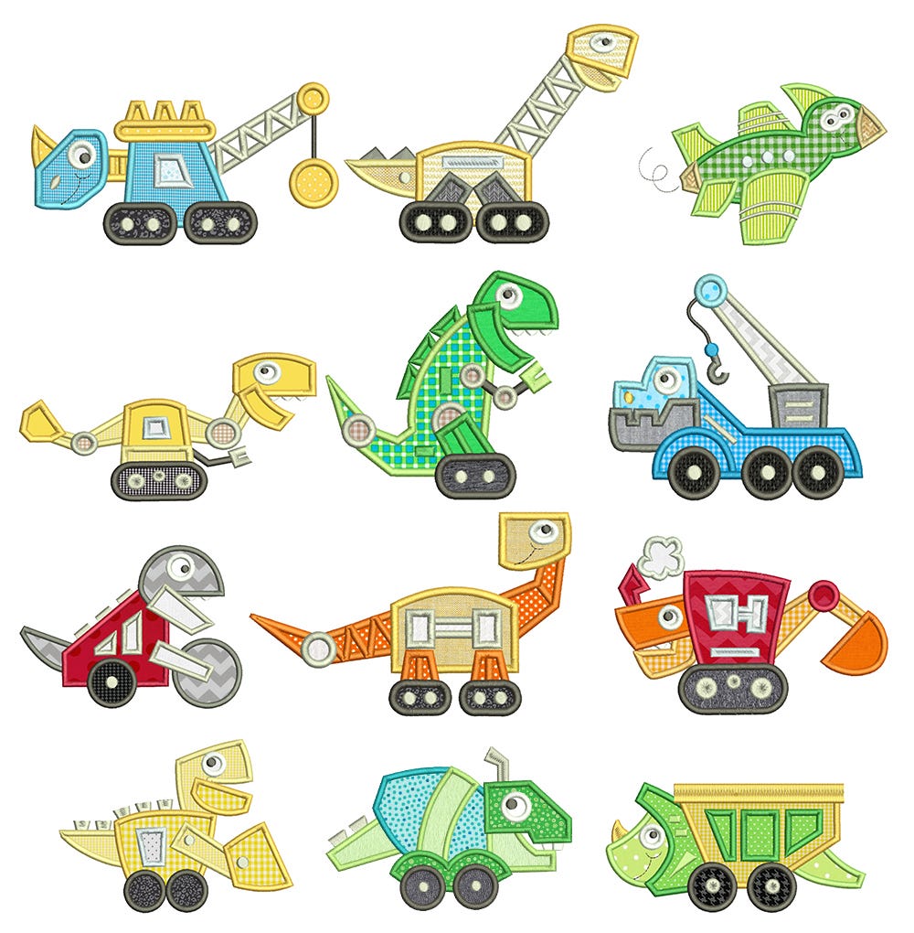 12 super fun mutant "constructasaurus" applique designs. Awesome for little boy projects!