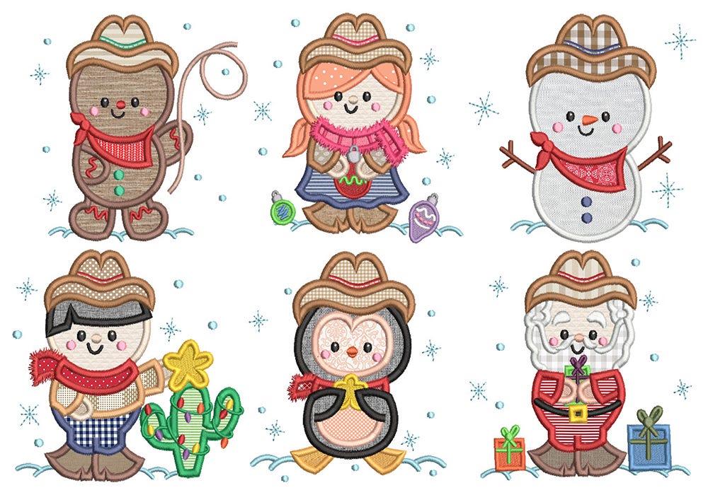 Yeehaw! 6 adorable applique designs for a cowboy Christmas!