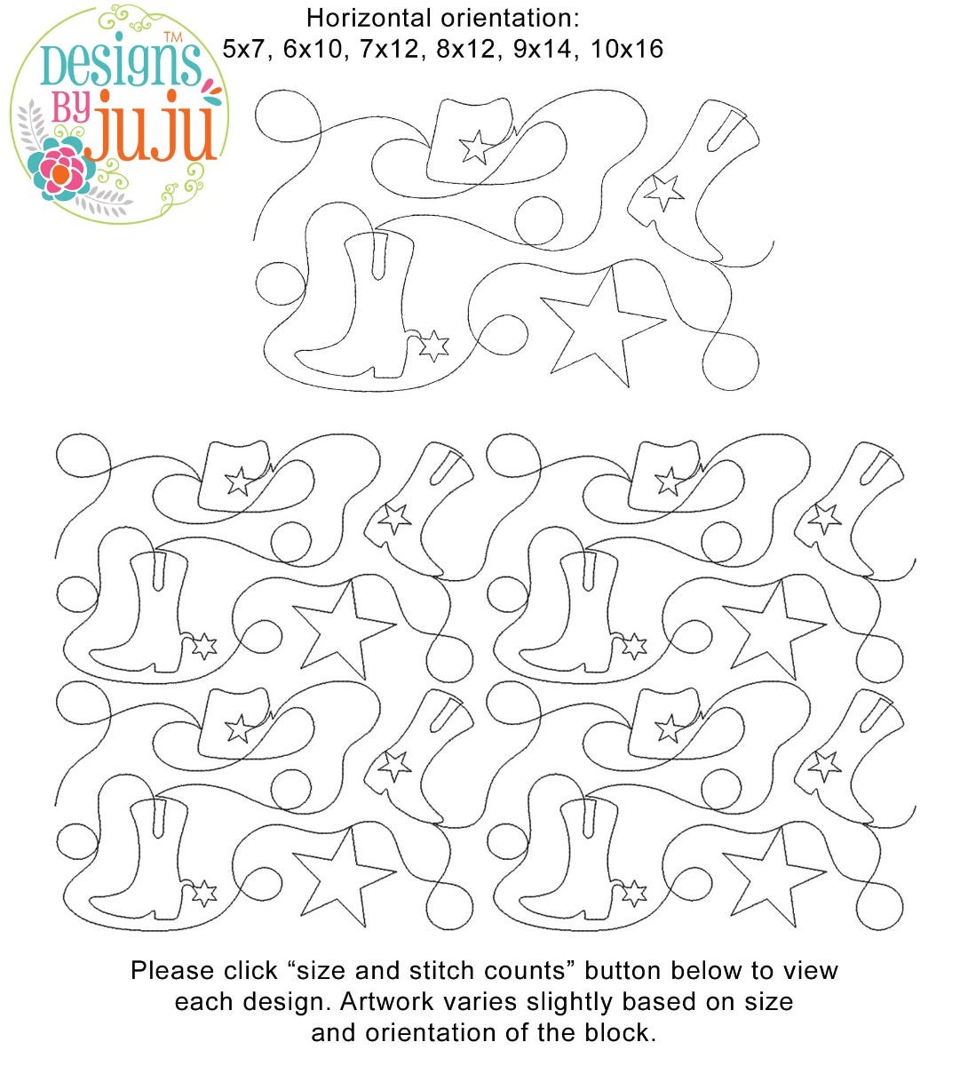 Please note: Both the scale of each pattern and arrangement of the motifs may vary based on the hoop size. Please click the "Size and Stitch Count" button to view the artwork for each size.